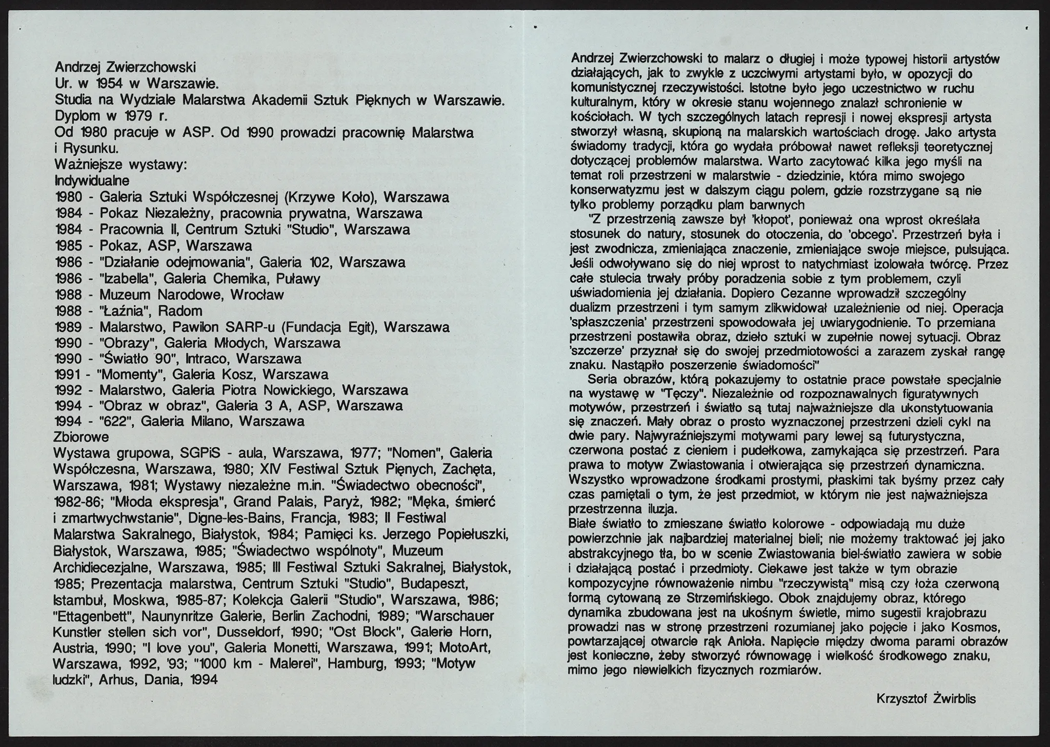 A. Zwierzchowski, malarstwo – ulotka do wystawy