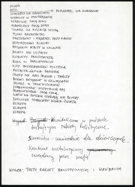 Dynamiczna akcja plastyczna, której kolejne ciągle aktualizowane wersje stanowiły próby interpretacji zmiennych losów Europy. Wiedza o świecie często przybiera charakter statystycznej układanki angażującej uwagę i pamięć w stopniu zależnym od doświadczenia kulturowego i standardów życia codziennego. Armia opowiadała o porządku i o zakłóceniu porządku, o kierunku i o utracie kierunku. Mówiła także o potencjale mapy ludzkich losów – jej lokalnej i symbolicznej dramaturgii.