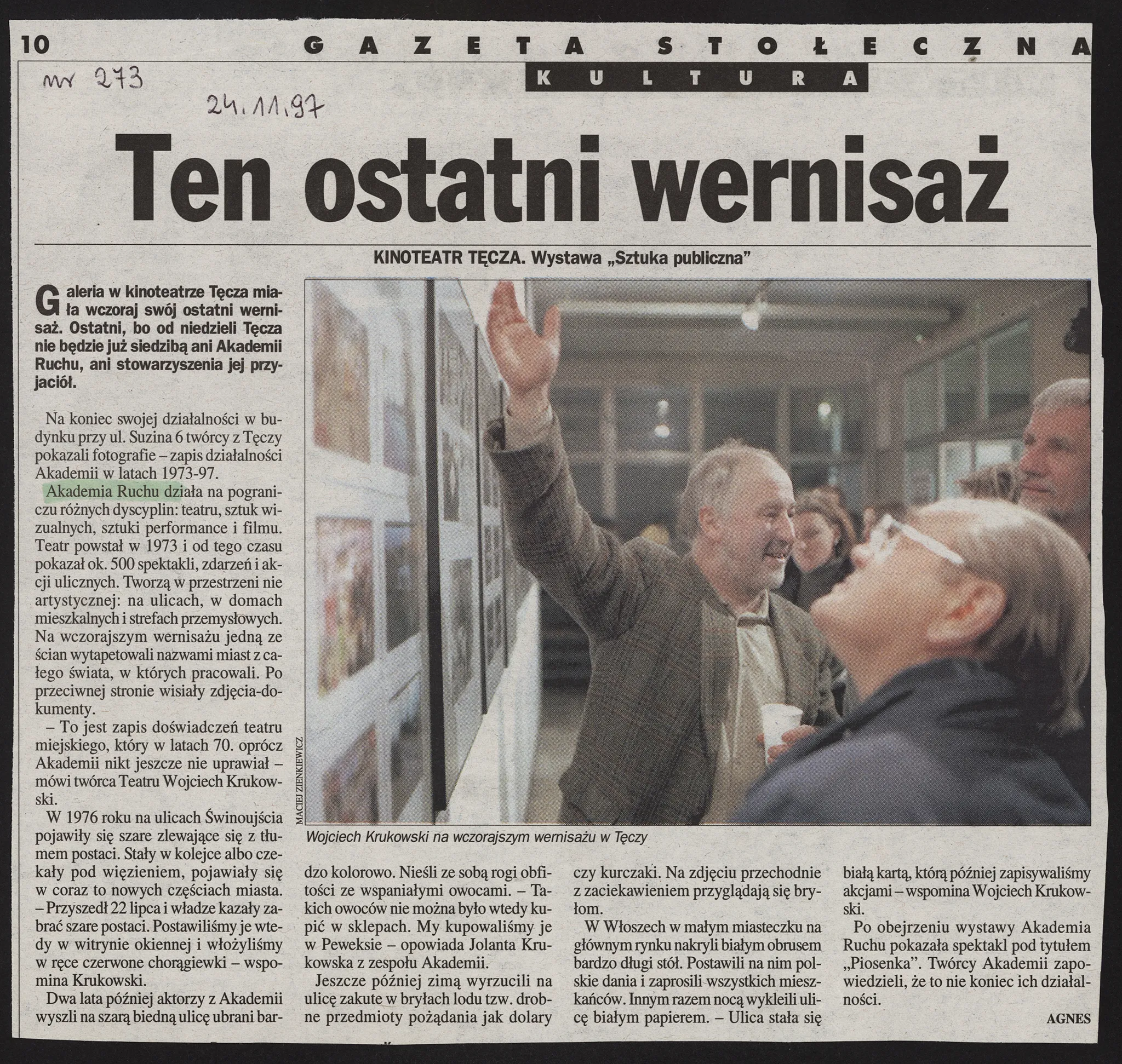 recenzja Artykuł o zamknięciu Tęczy – „Gazeta Stołeczna” 24.11.97 data 1997 format kolor kolor osoby widoczne miejsce copyright czas trwania opis