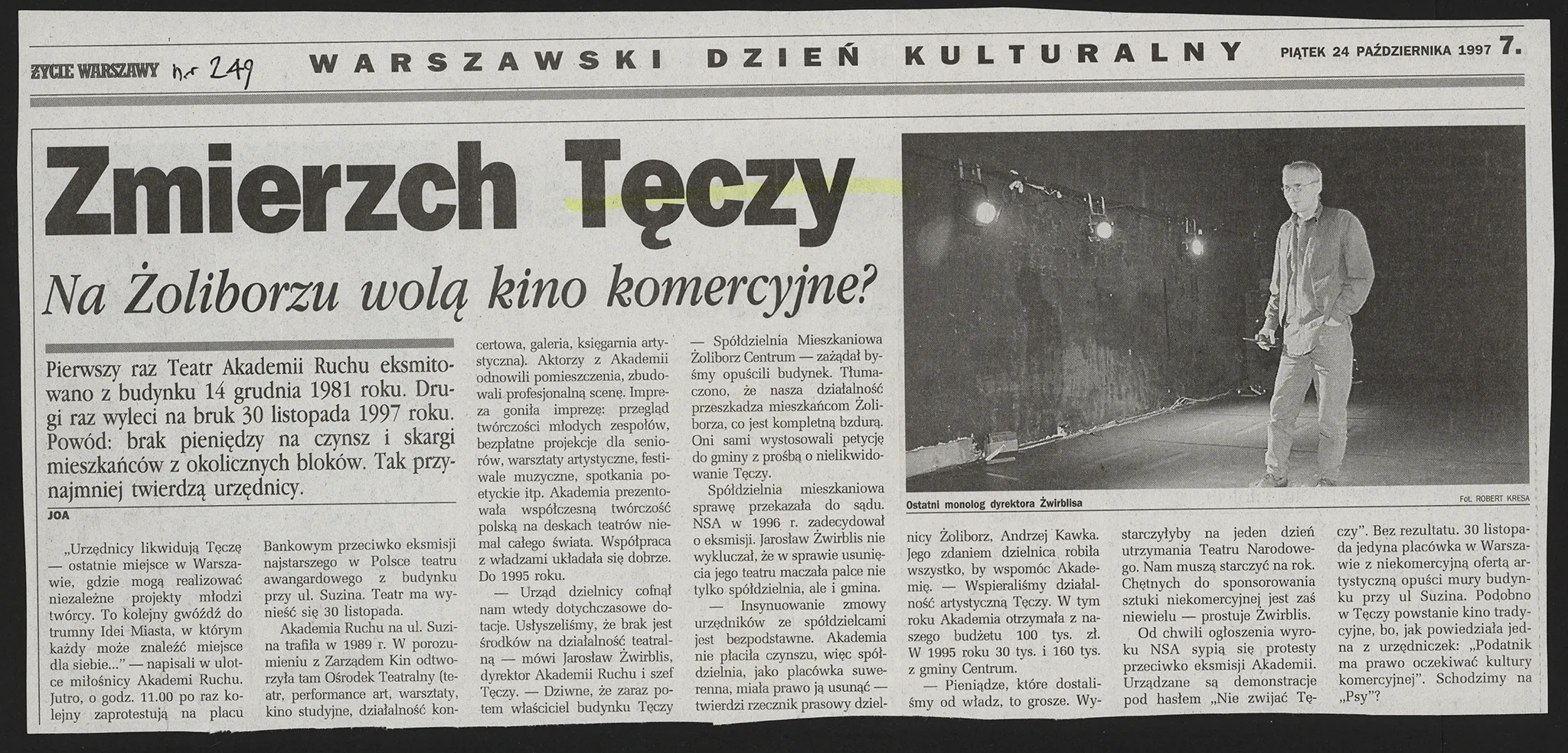 recenzja Artykuł o zamknięciu „Tęczy” – „Życie Warszawy” 24.11.97 data 1997 format kolor kolor osoby widoczne miejsce copyright czas trwania opis
