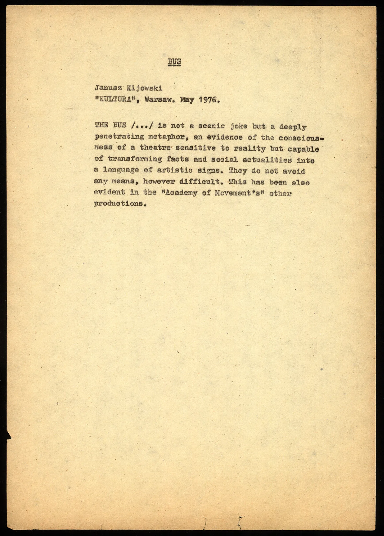 Autobus – recenzja „Kultura” (po angielsku)