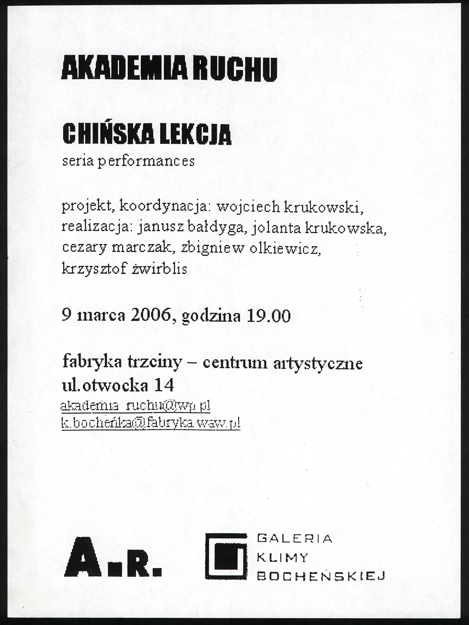 Chińska lekcja – zapowiedź internetowa pokazu w Zachęcie