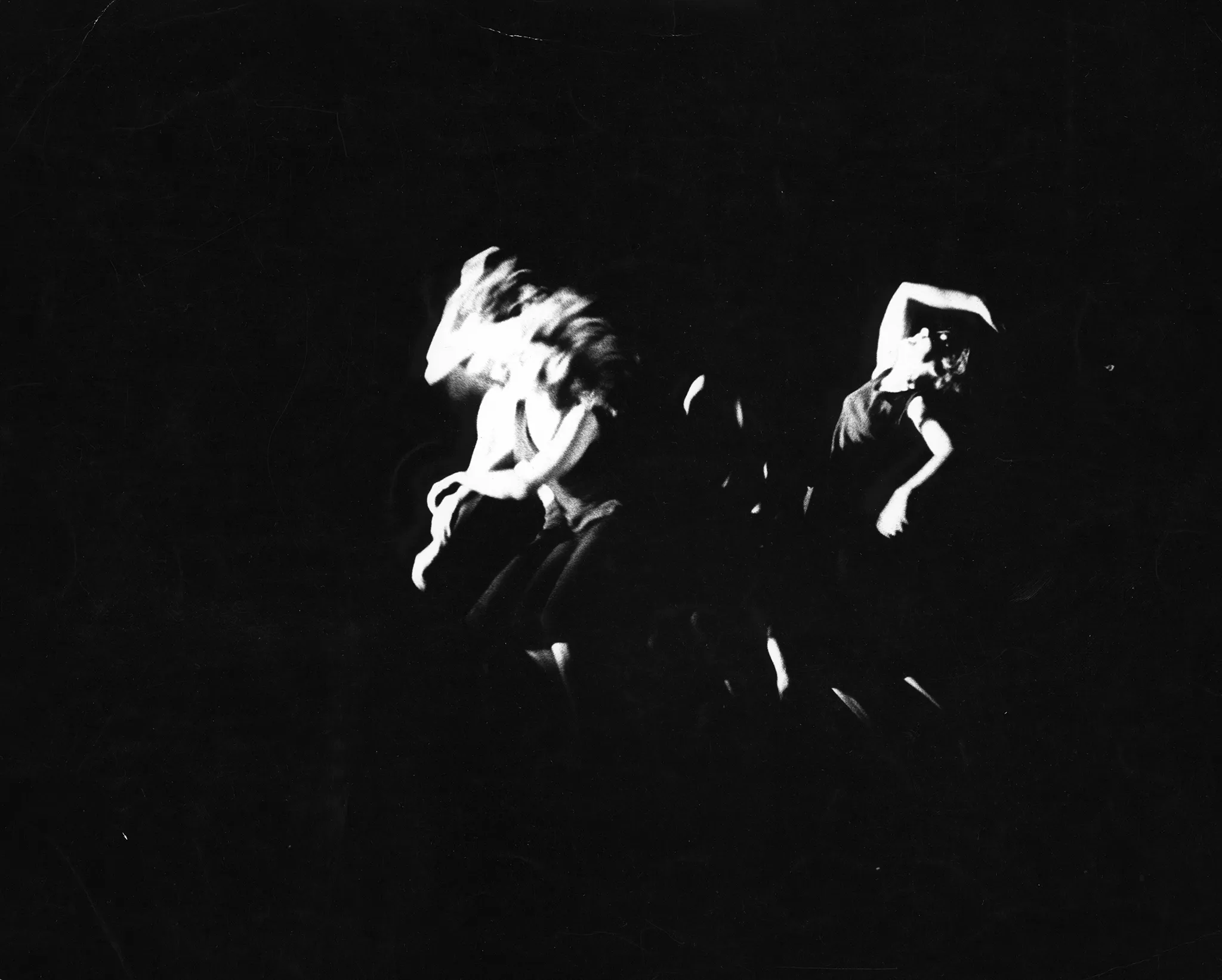 Niewyraźne, rozmazane zdjęcie. Grupa aktorek wygląda, jakby tańczyła. Wydają się wystraszone.