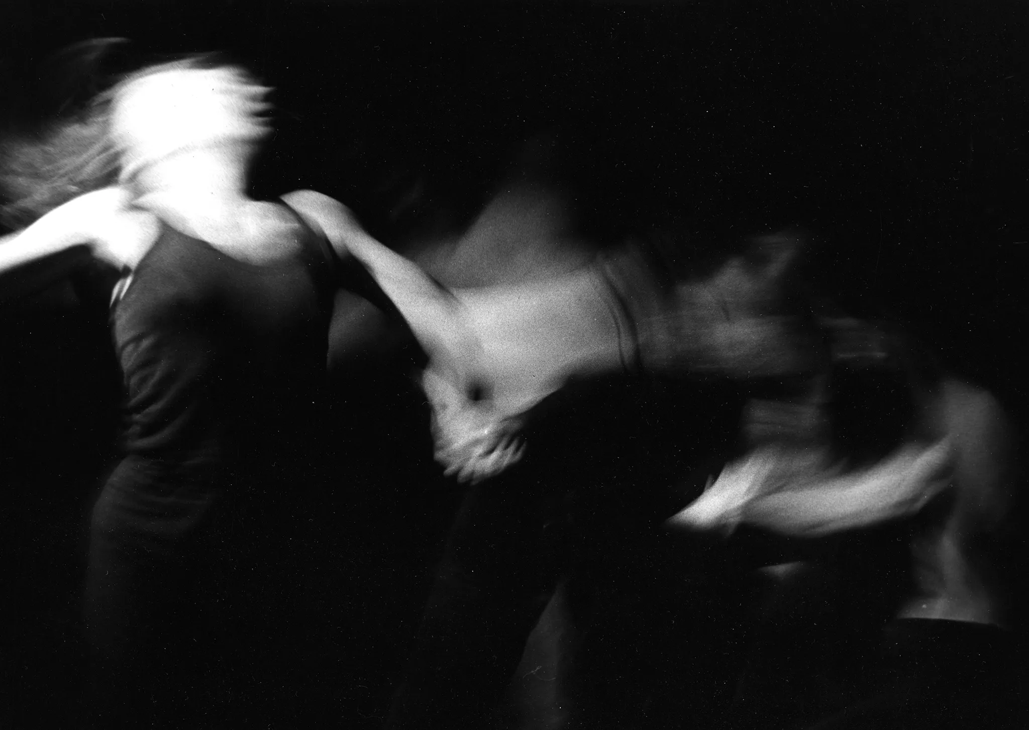 Niewyraźne, rozmazane zdjęcie. Grupa aktorek wygląda, jakby tańczyła. Wydają się wystraszone.