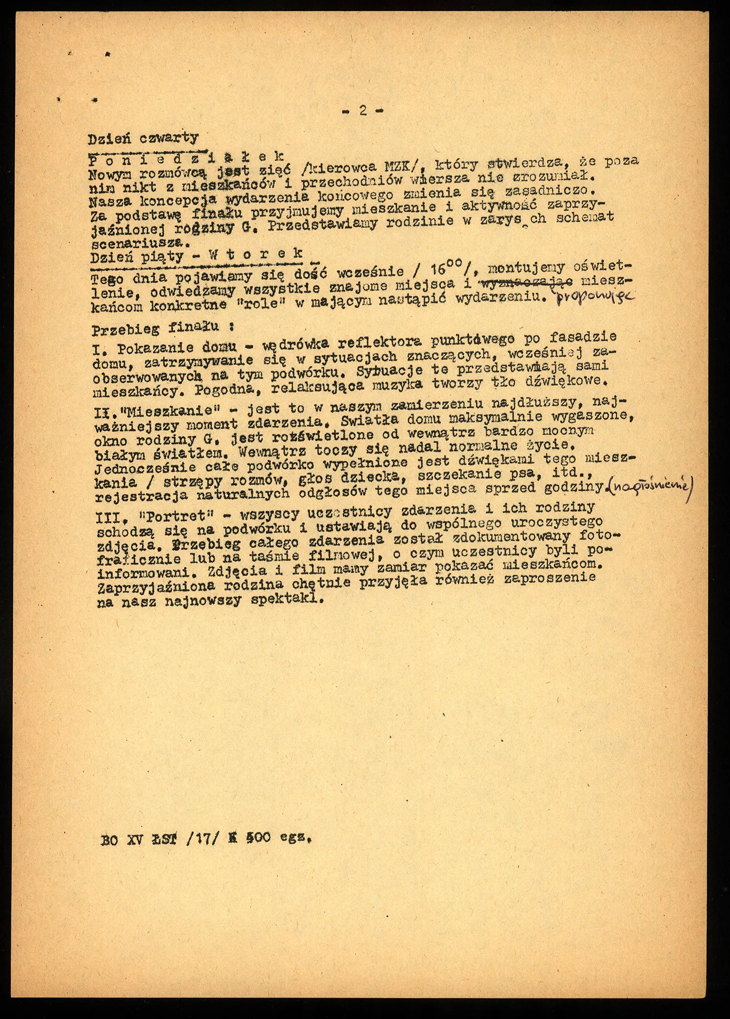 Kolejne działanie z cyklu Dom, tym razem zrealizowane w październiku 1979 roku w Łodzi. Po wstępnych rozmowach zapoznających ze sobą ludzi AR i mieszkańców domów w „podwórku studni” przy ul. Nawrot, mieszkańcy zgodzili się uczestniczyć we wspólnej akcji. Jej motywem było czytanie, w ciągu jednego wieczoru (na podwórku, w oświetlonych punktowymi reflektorami oknach domów, przy użyciu nagłośnienia) wierszy Ryszarda Krynickiego. Po zakończeniu akcji obsługa miejscowej restauracji samorzutnie przyjęła zespół AR kolacją na zapleczu kuchennym lokalu.