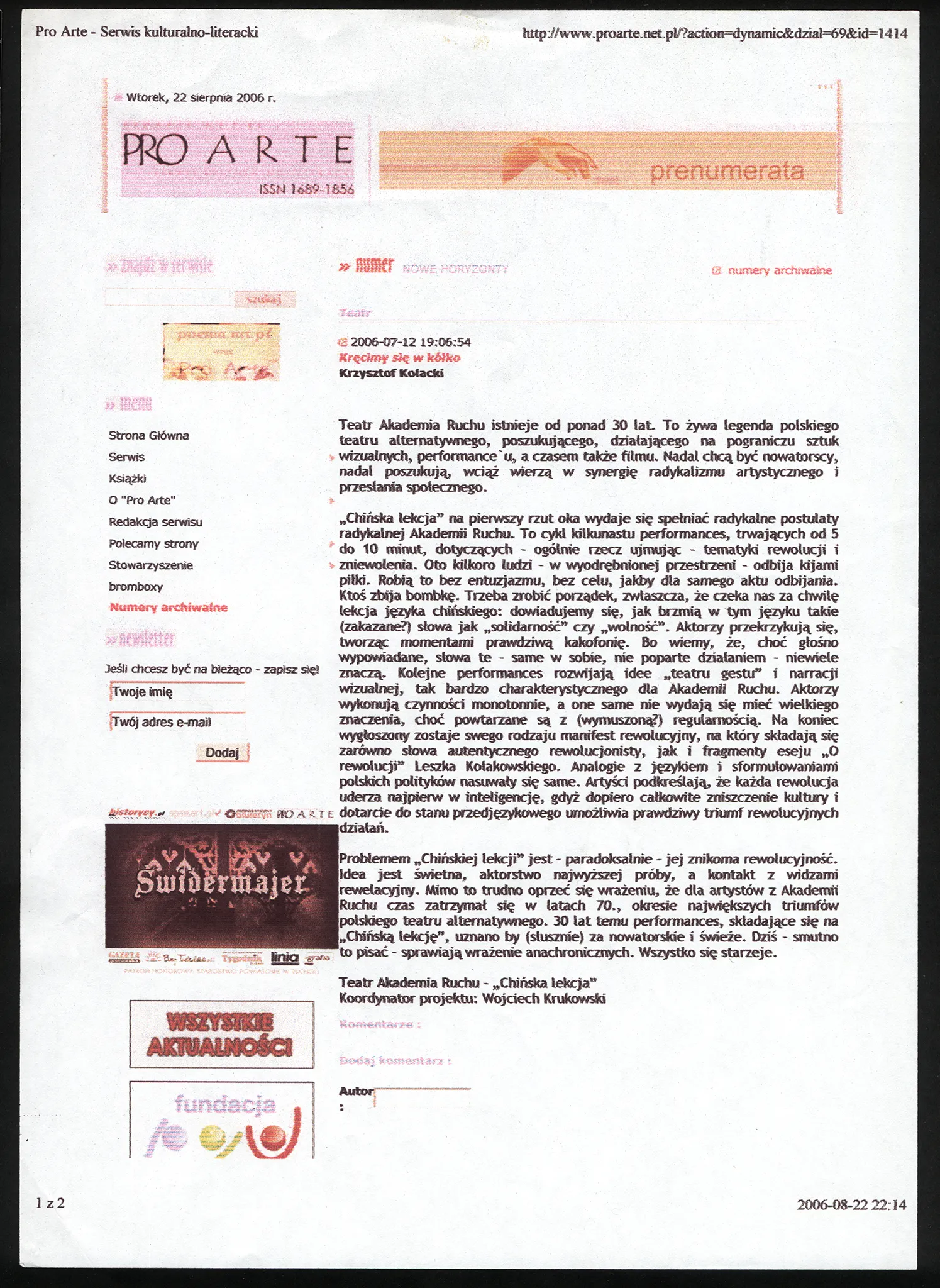 Chińska lekcja – recenzja w gazecie Łódzkich Spotkań Teatralnych po polsku i po angielsku