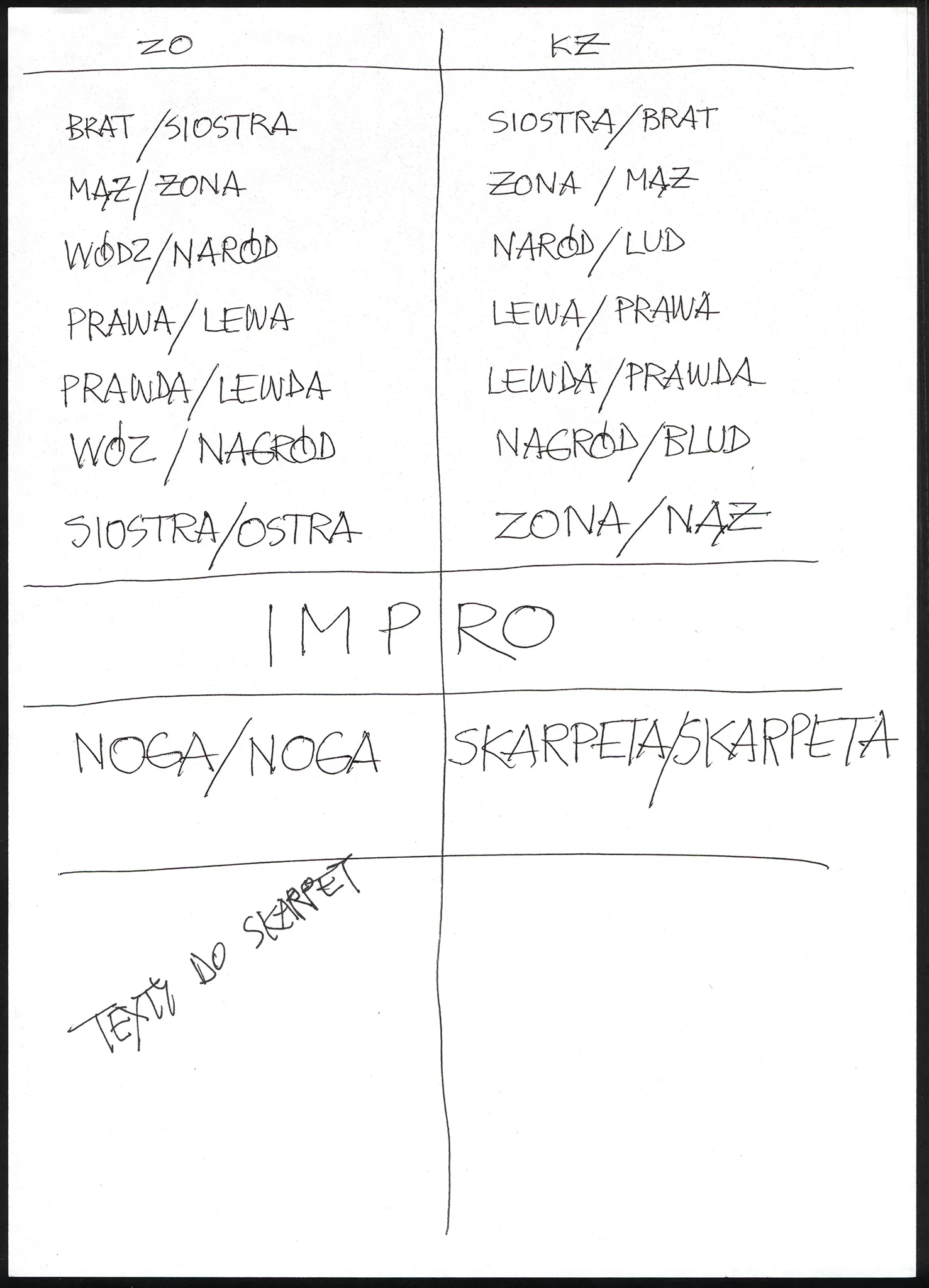 notatki reżyserskie, cz/b