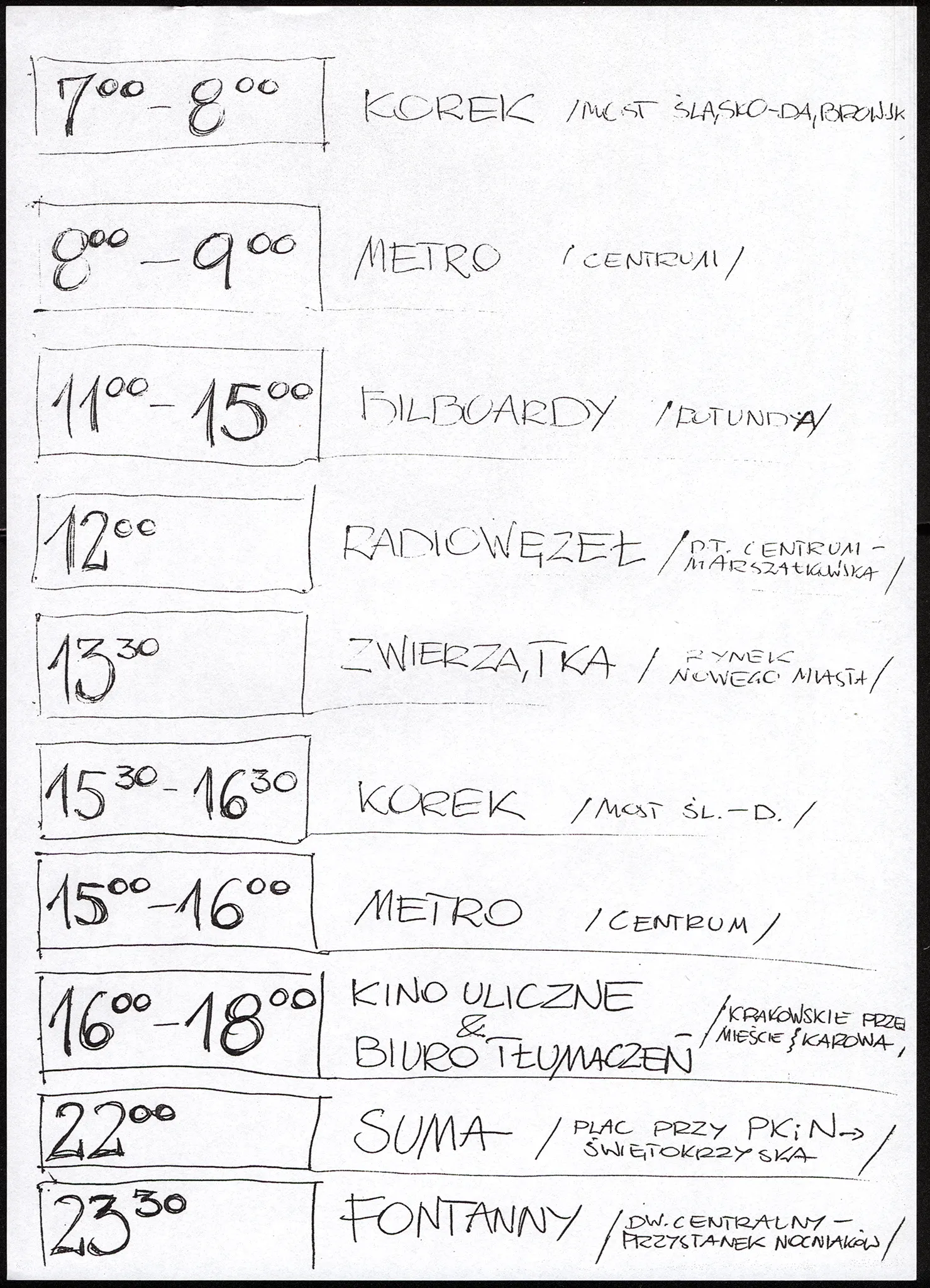 notatki reżyserskie, cz/b