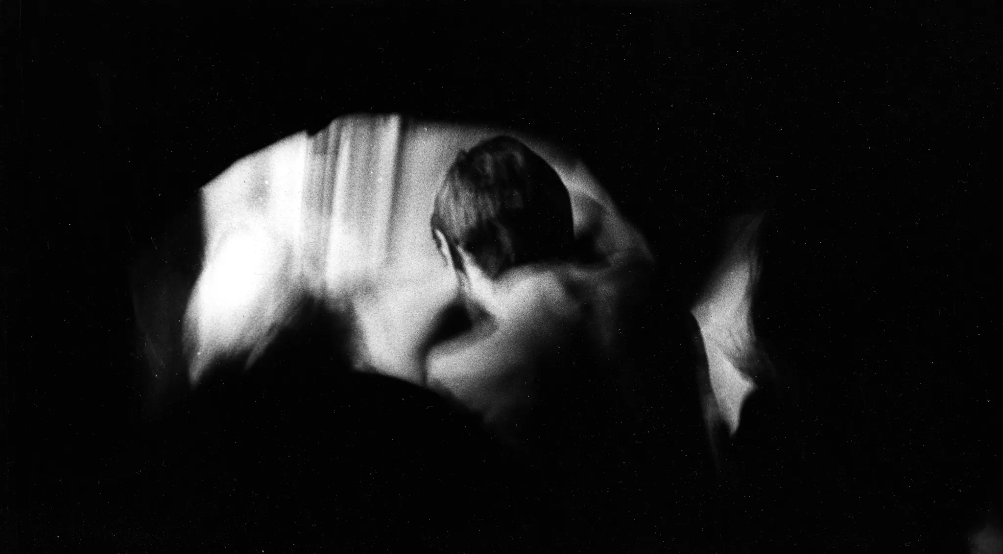 Niewyraźne, rozmazane zdjęcie. Po lewej stronie stoi zwrócony do nas plecami aktor bez koszulki. Ma wyciągnięte za siebie ręce i trzyma w nich rękę aktorki stojącej po prawej stronie. Aktorka wygląda na uśmiechniętą.