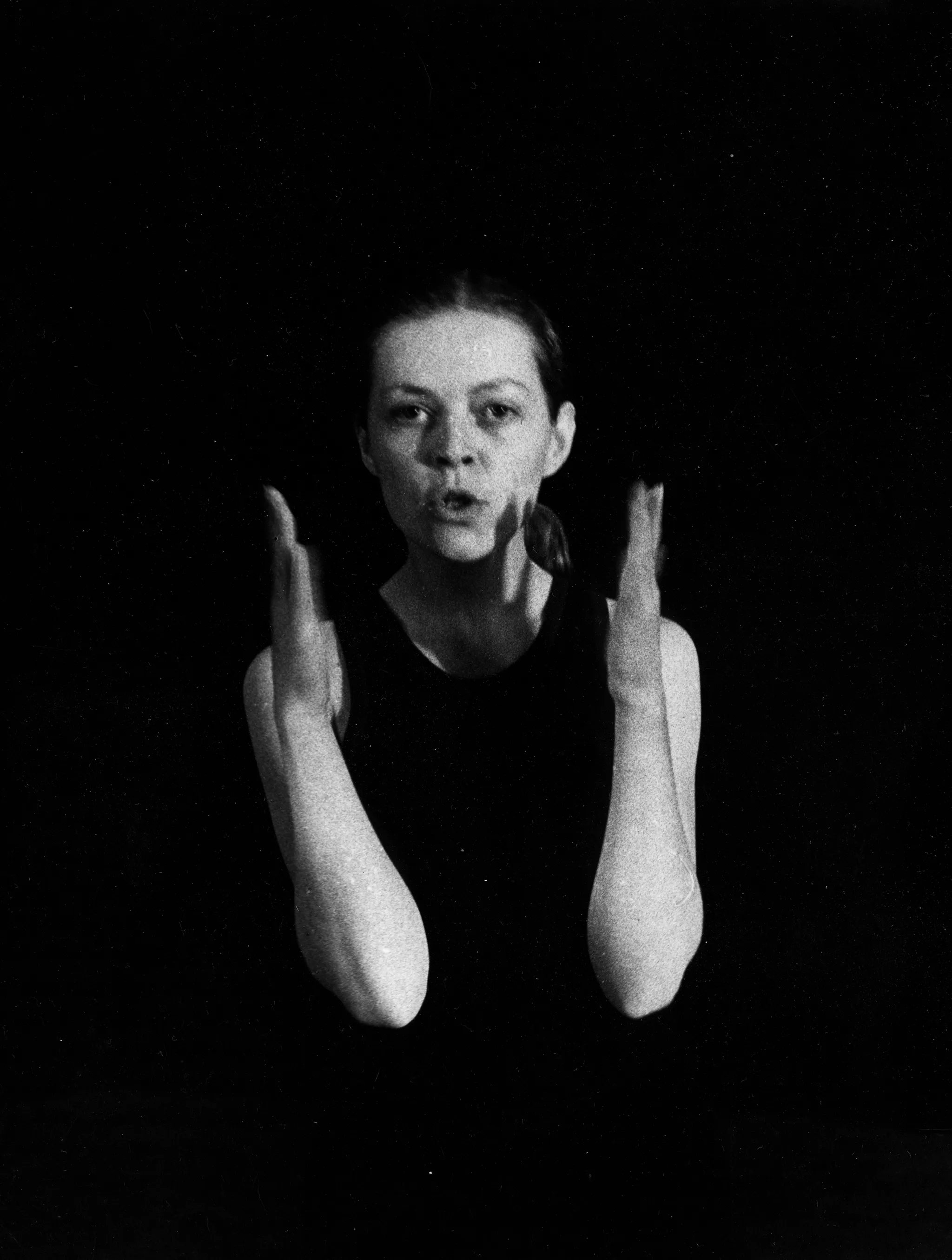 Niewyraźne, rozmazane zdjęcie. Grupa aktorek wygląda, jakby tańczyła. Wydają się wystraszone.