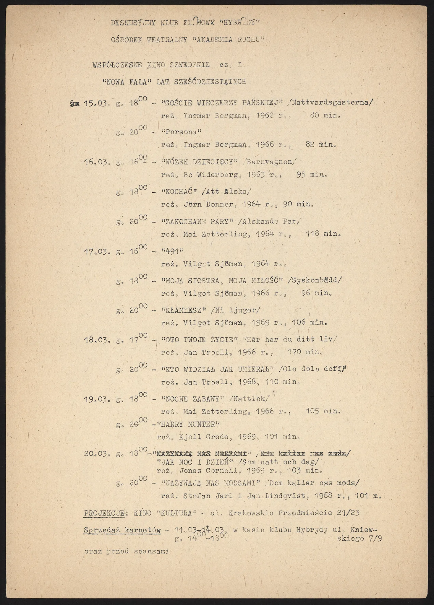 Inne ośrodki (1985) Inne ośrodki → “Żytnia” – program filmowy program, kolor Inne ośrodki → Akademia Muzyczna – program filmowy 03.1985 program, kolor 1985 Inne ośrodki → DKF Hybrydy program, kolor Inne ośrodki → OK “Cora” – program IV-XII program, kolor 1981 Inne ośrodki → DKF Kino “O” – program program, kolor program DKF Hybrydy date format color kolor visible persons location copyright running time description