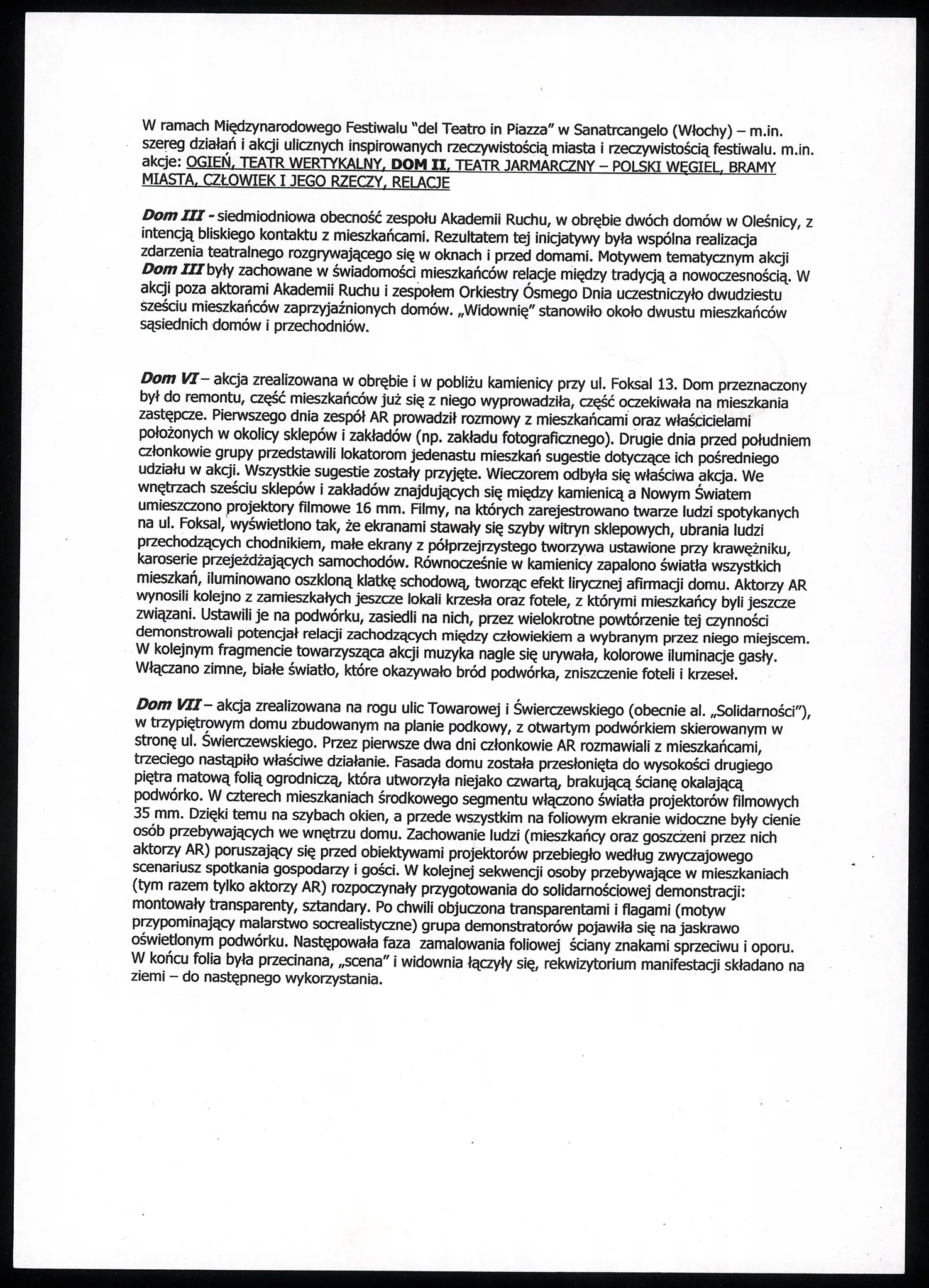 Dom III, VI, VII – opisy — Akademia Ruchu. Archive