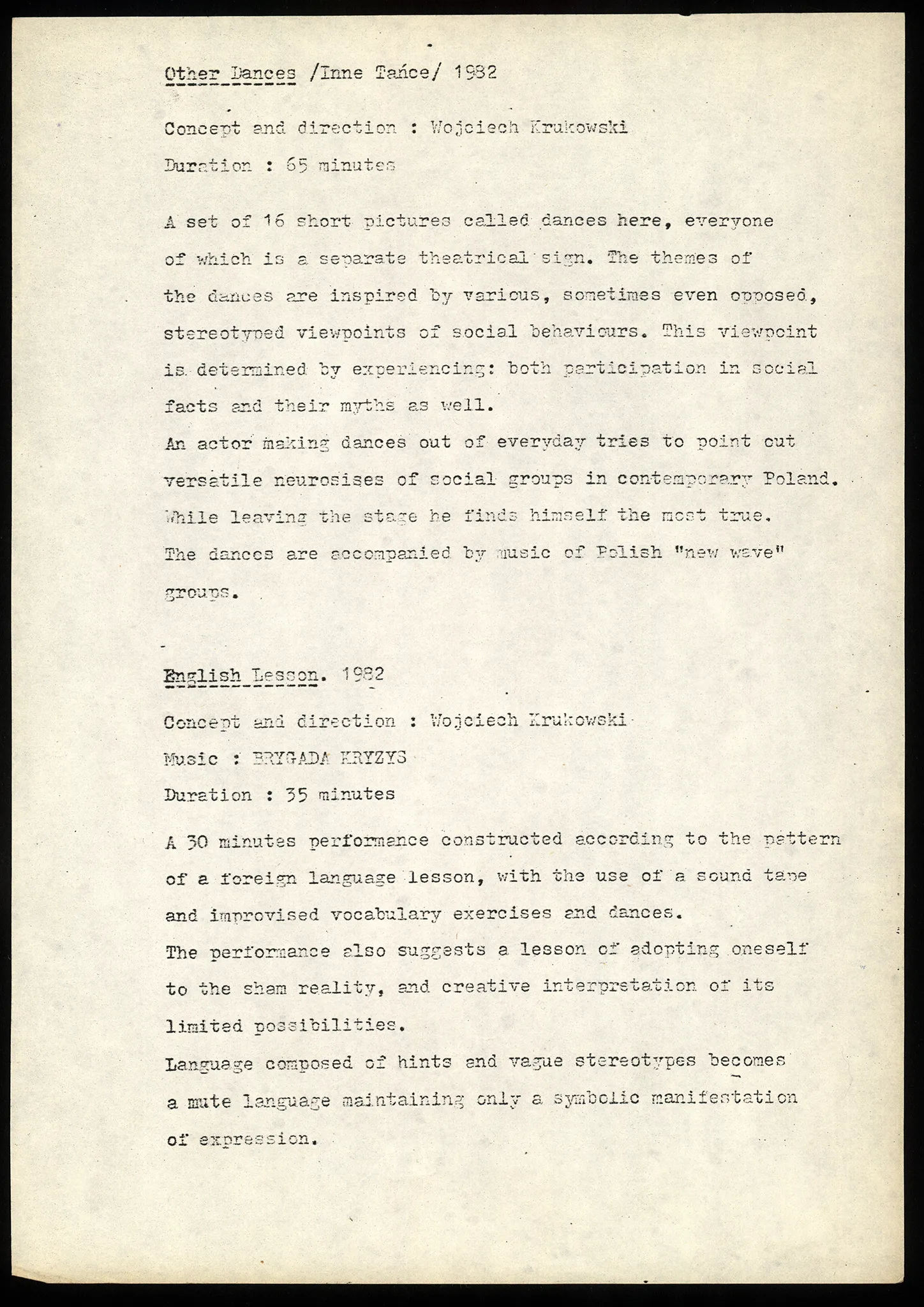 English Lesson i Inne tańce – opisy