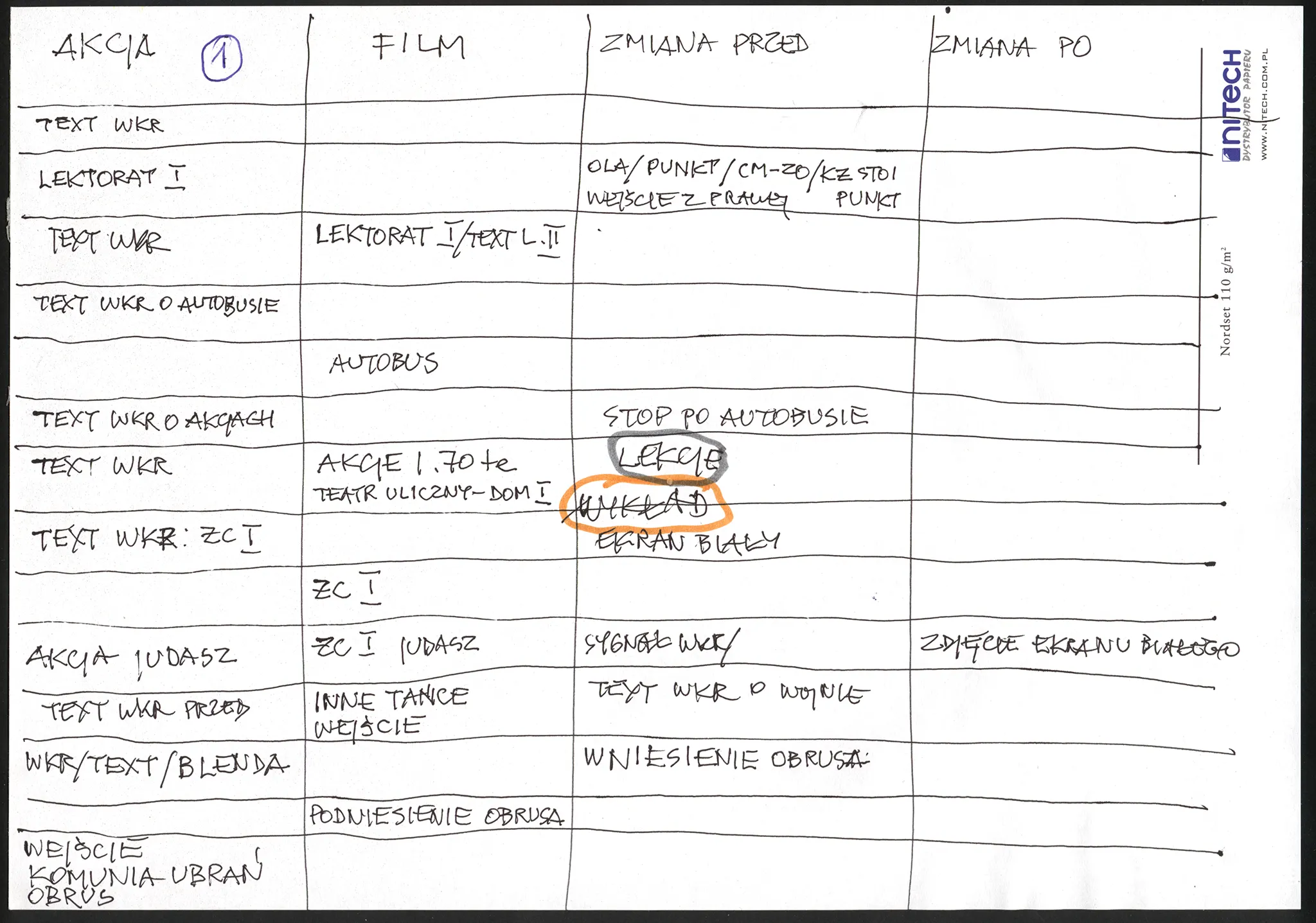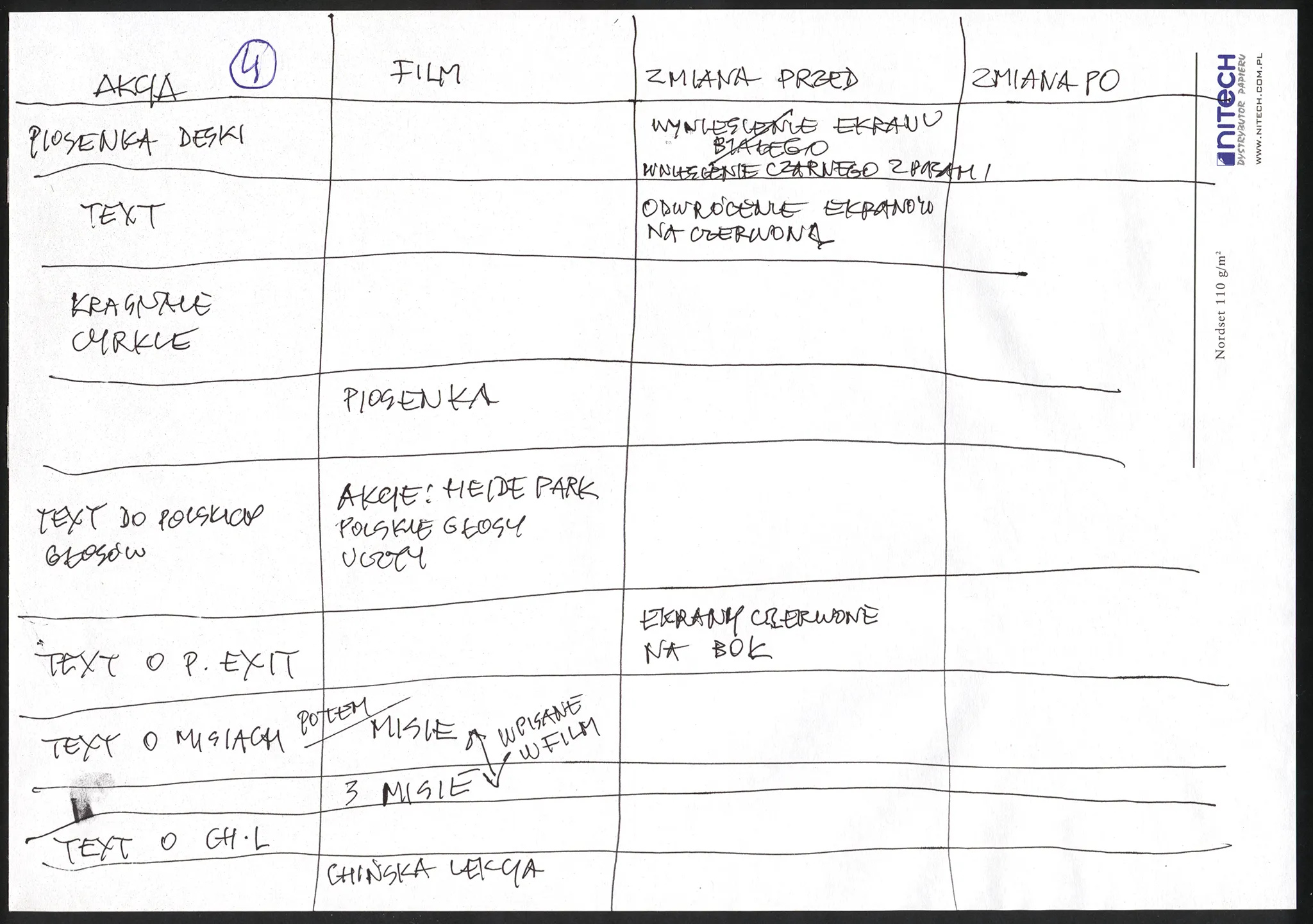 notatki reżyserskie