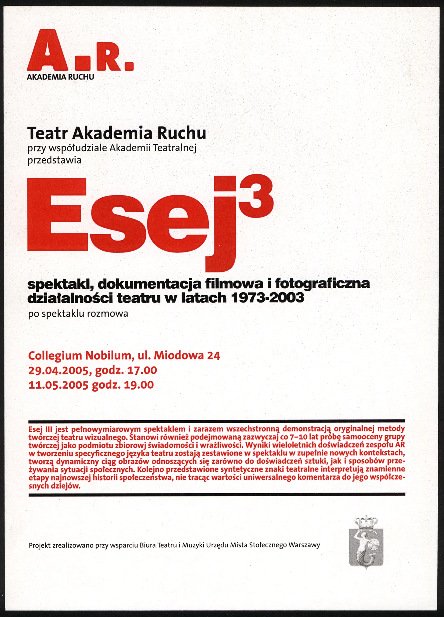 Esej III – ulotka — Akademia Ruchu. Archive