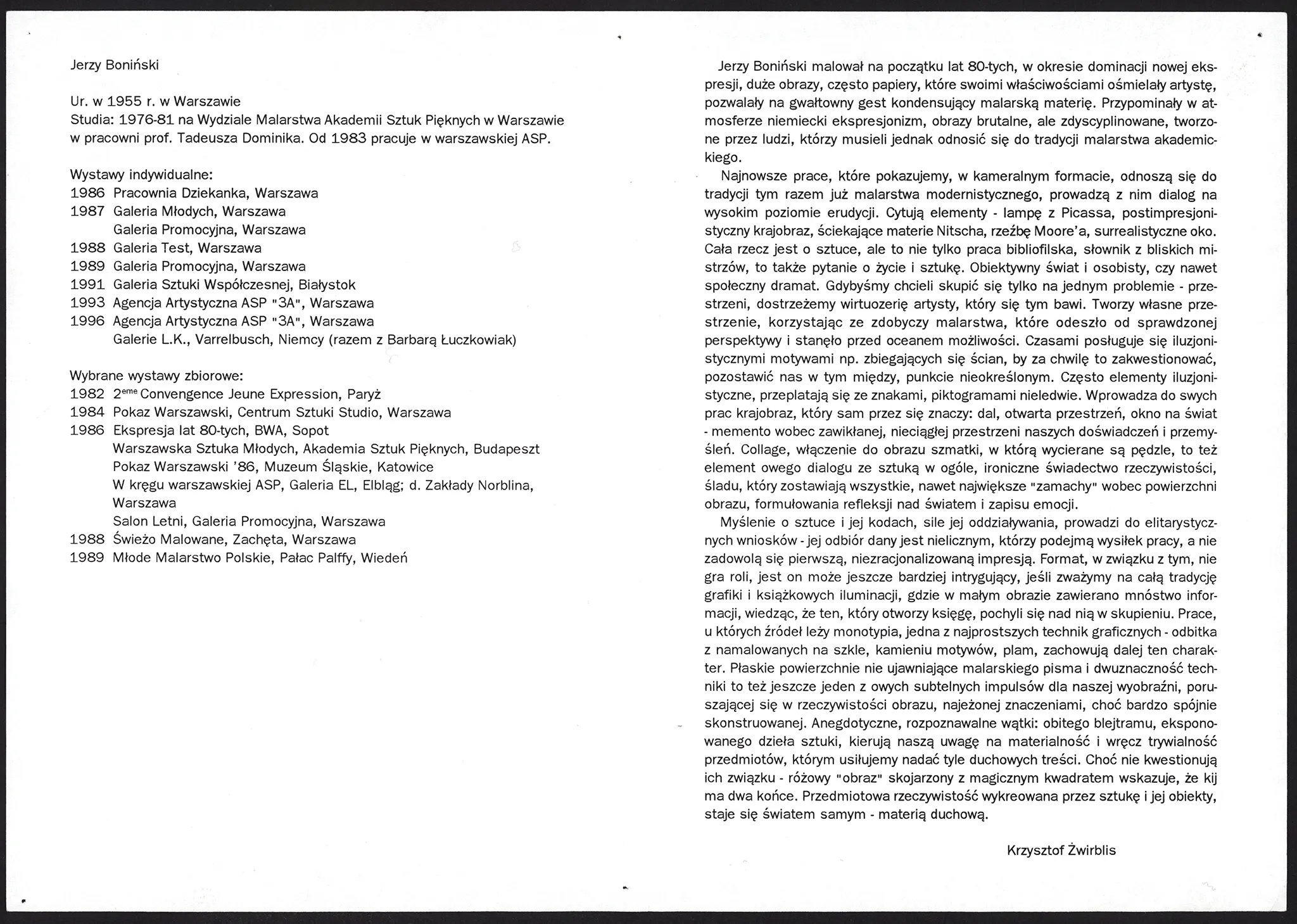 J. Boniński, malarstwo – ulotka do wystawy
