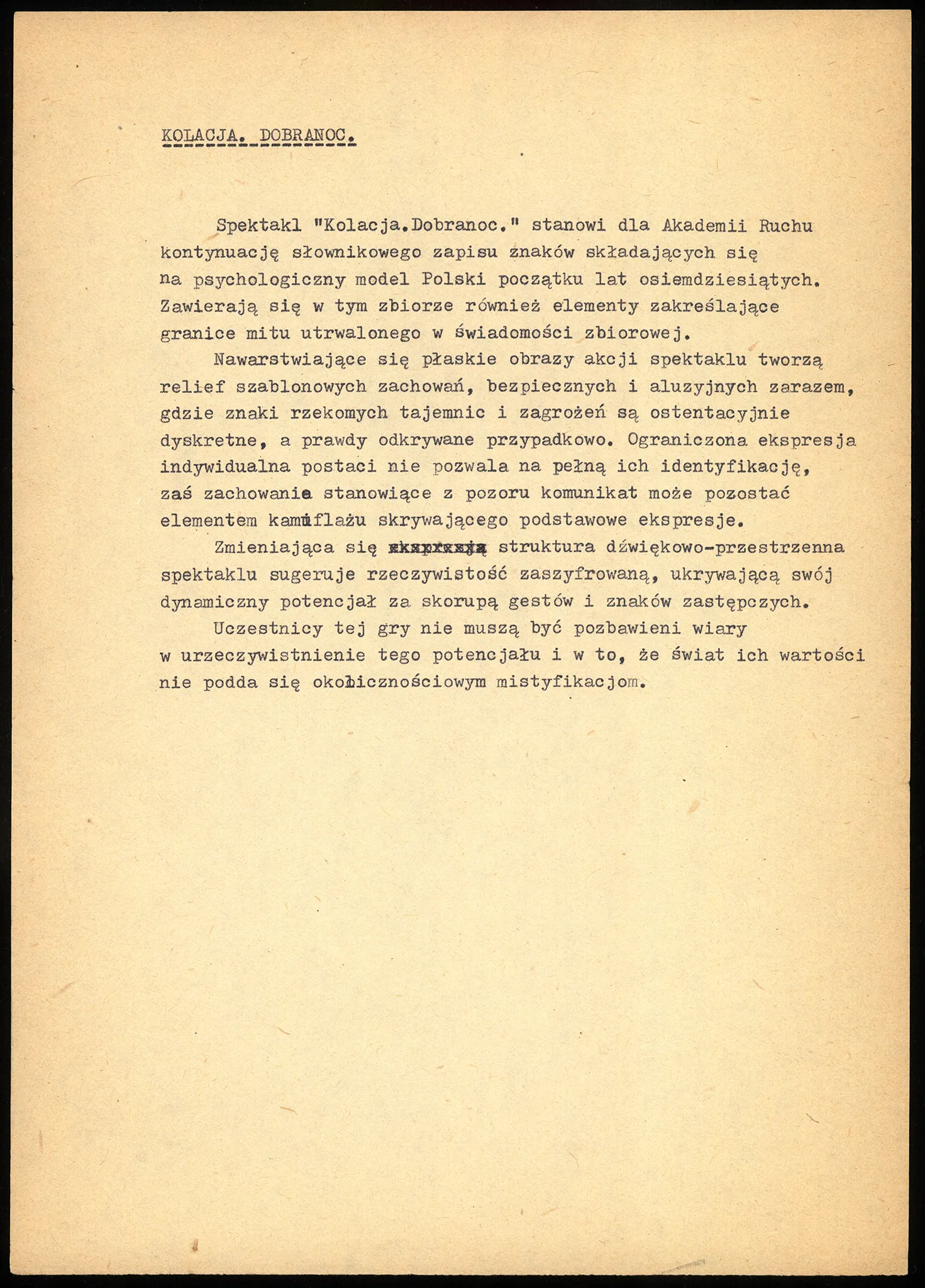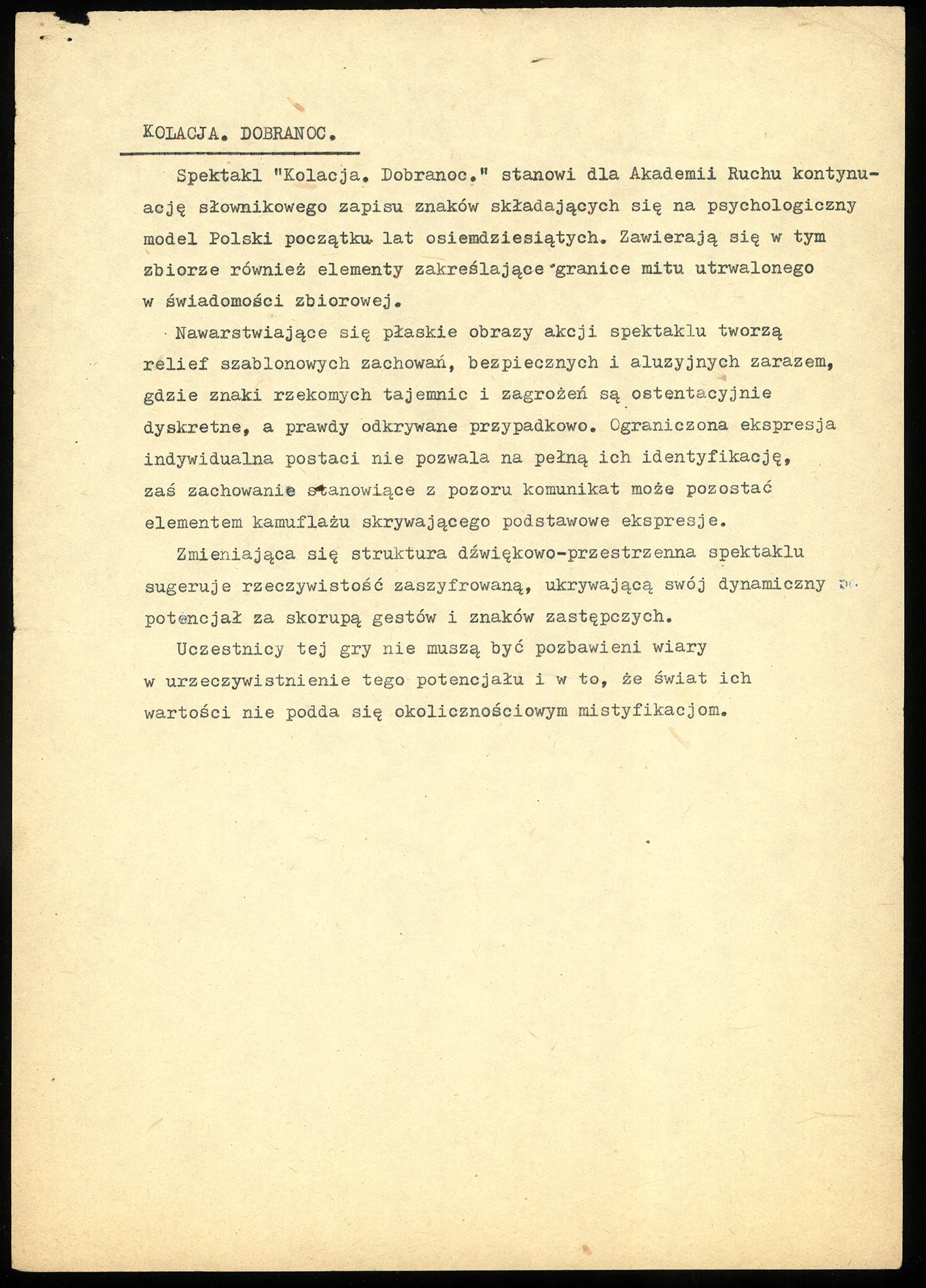 Kolacja. Dobranoc – tekst wykorzystywany w przedstawieniu