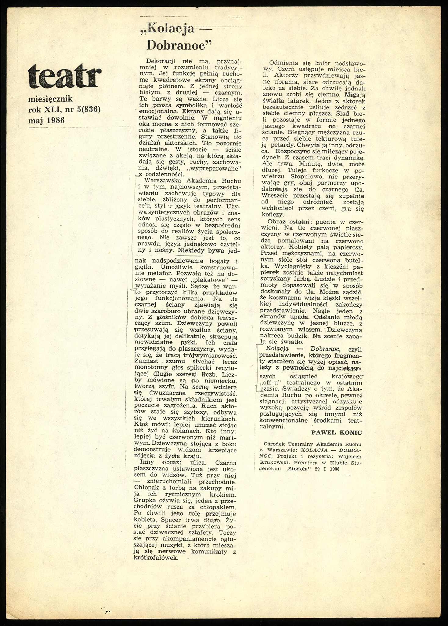 Kolacja. Dobranoc – recenzja “Teatr” — Akademia Ruchu. Archive