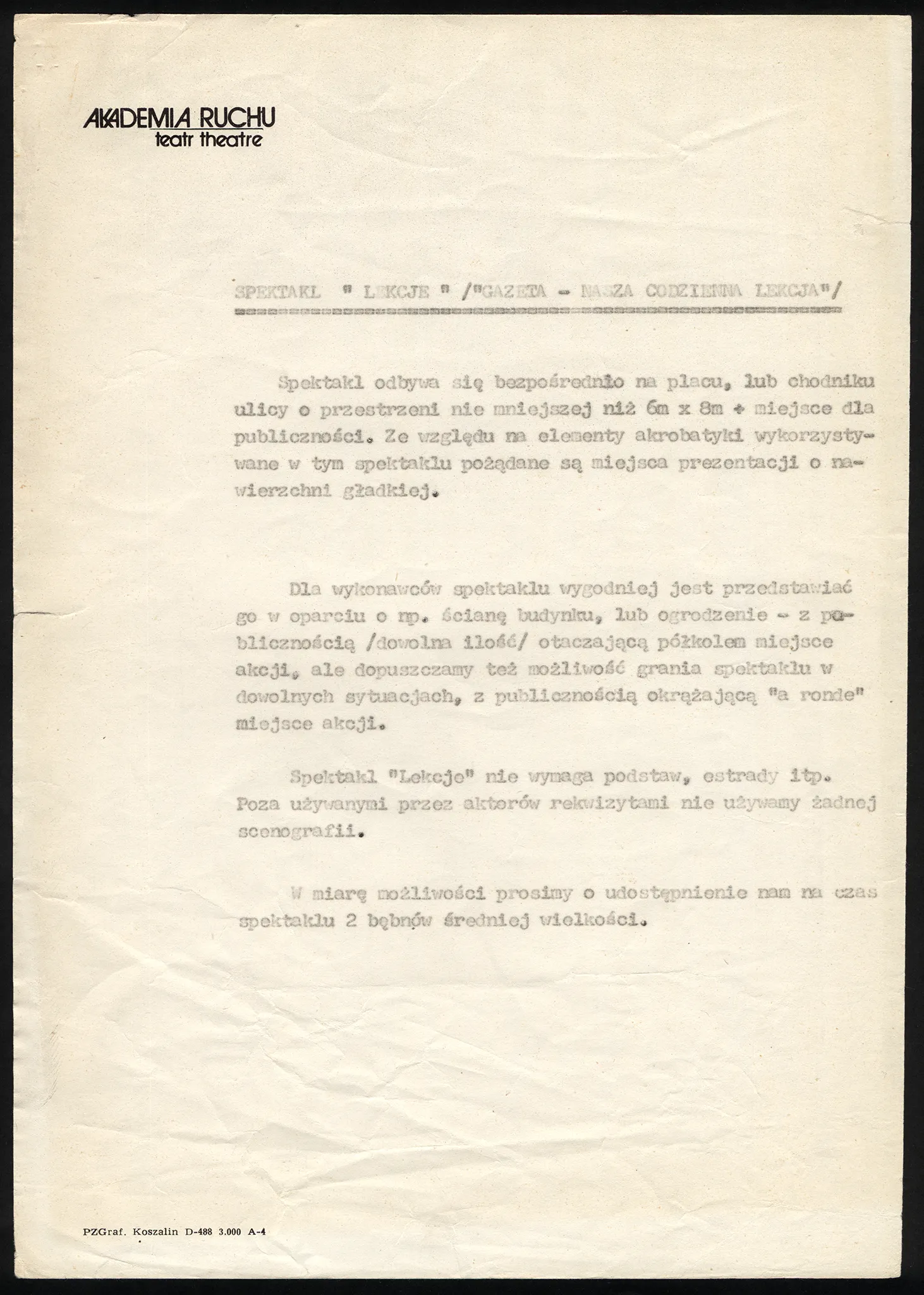 Lekcje (Gazeta nasza codzienna lekcja) – rider techniczny po angielsku