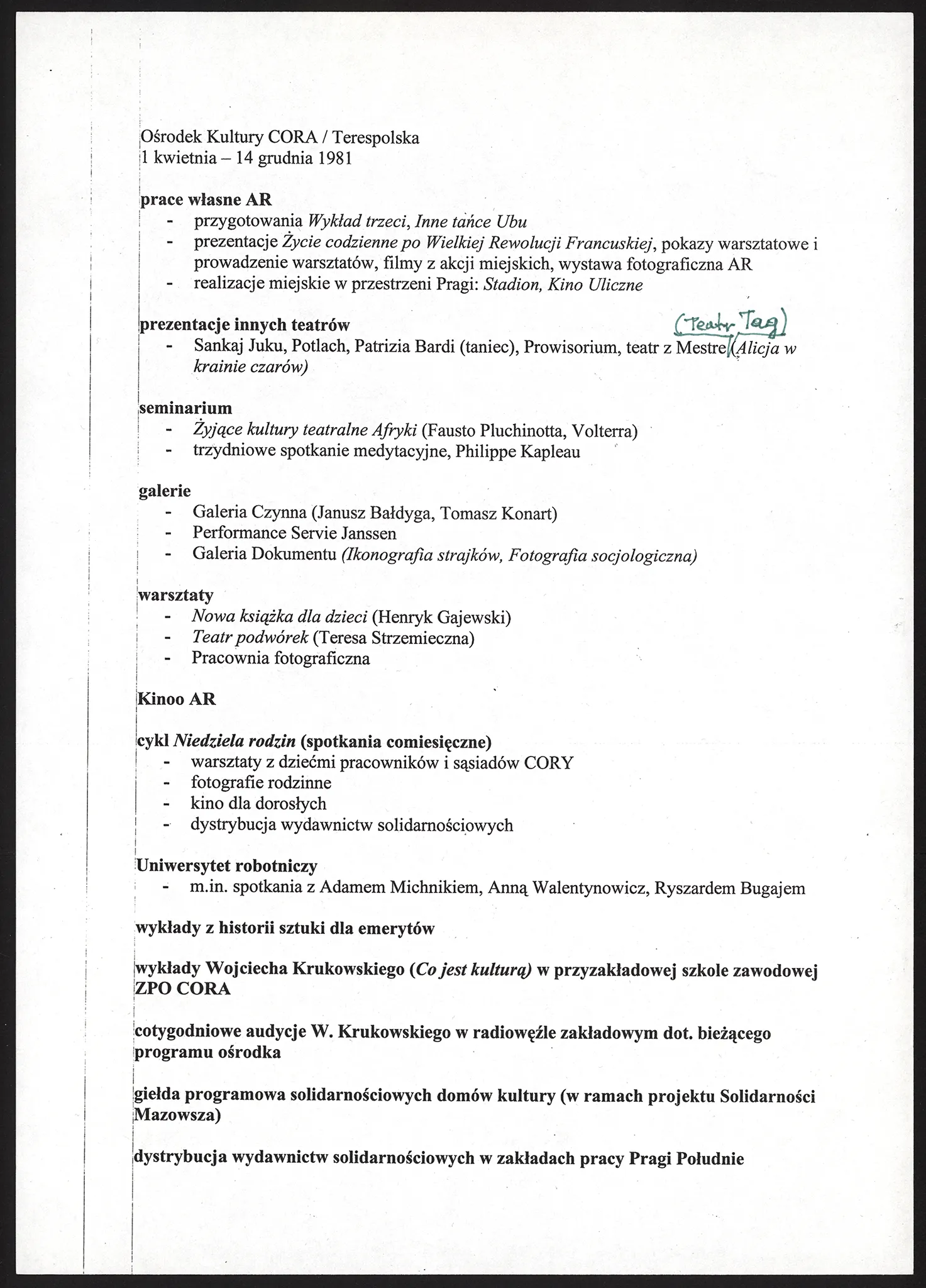 OK “Cora” – program IV-XII — Akademia Ruchu. Archive