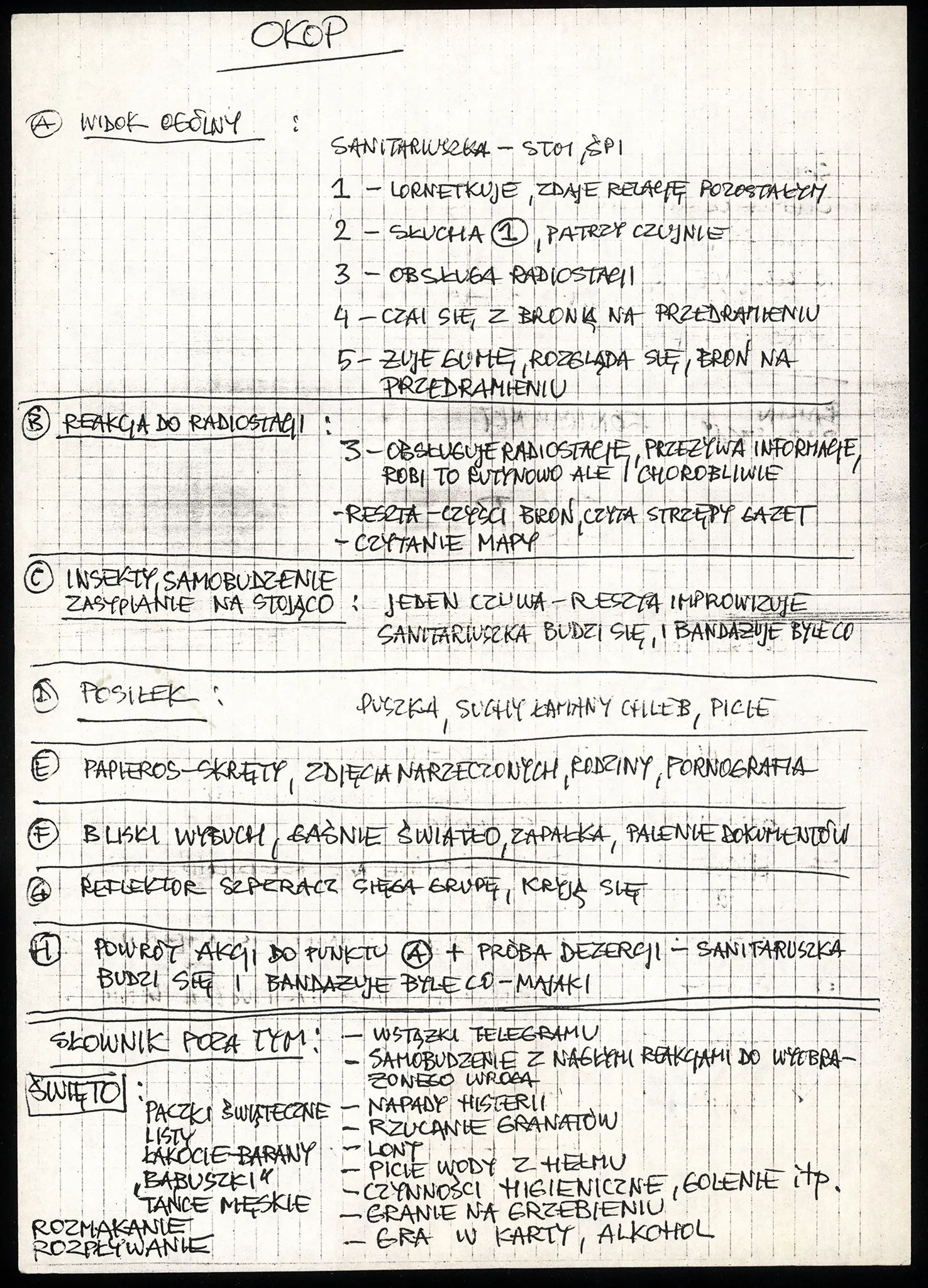 akcja Okop (1988) Okop → Okop fotografia, cz/b 1988 Okop → Okop fotografia, cz/b 1988 Okop → Okop fotografia, cz/b 1988 Okop → Okop fotografia, cz/b 1988 Okop → Okop – notatki reżyserskie notatki reżyserskie, cz/b 1988 notatki reżyserskie Okop – notatki reżyserskie date 1988 format color cz/b visible persons location copyright running time description