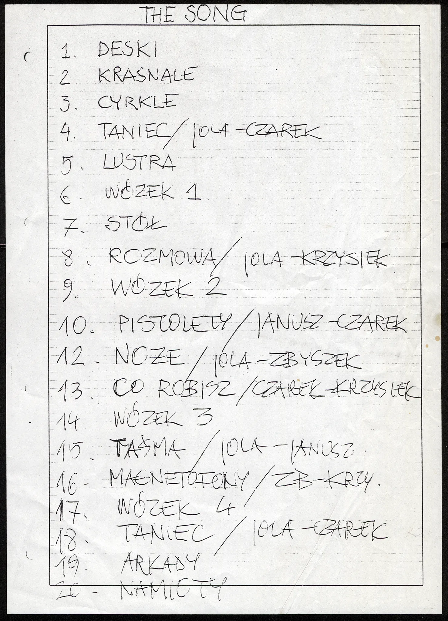 Piosenka – notatki reżyserskie