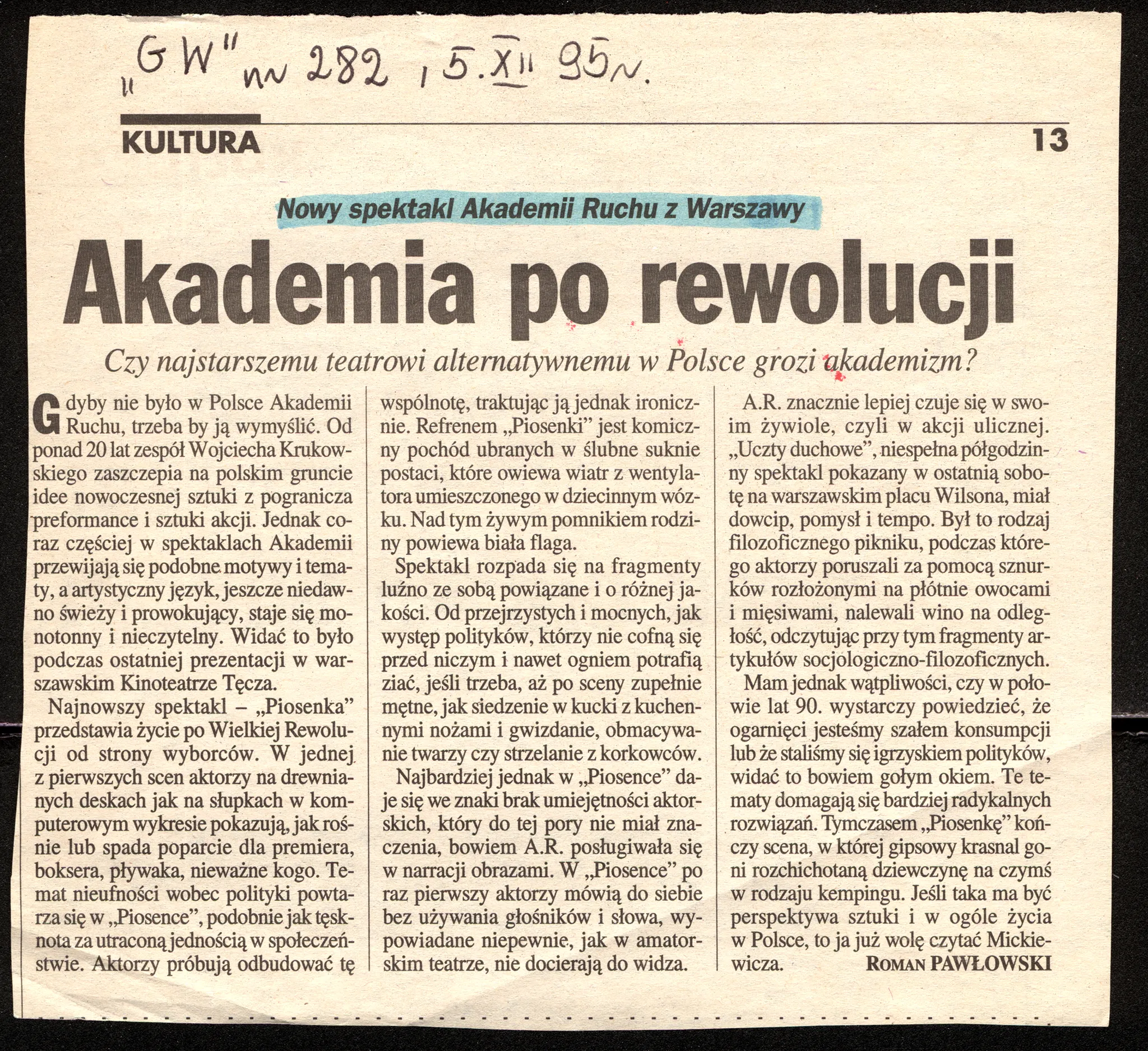 Piosenka – recenzja “Gazeta wyborcza” — Akademia Ruchu. Archive