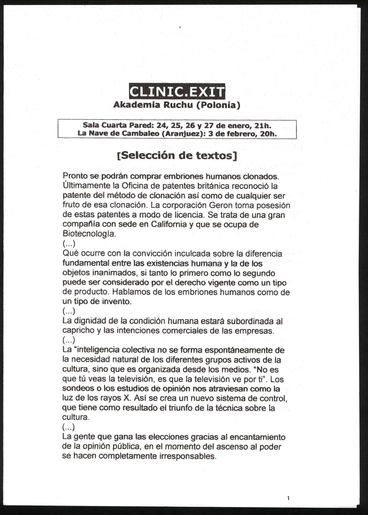 Przychodnia. Exit – teksty do przedstawienia po hiszpańsku