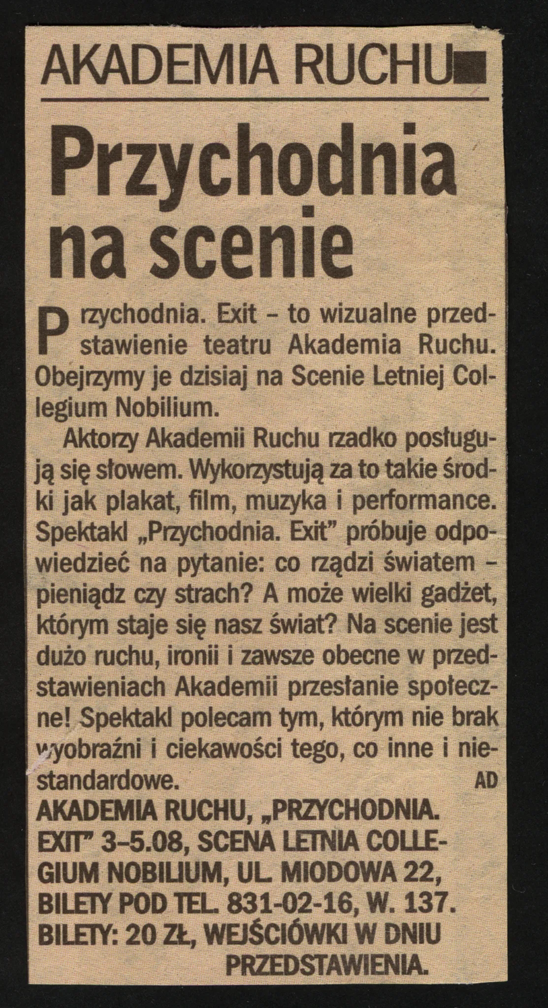 Przychodnia. Exit – zapowiedź prasowa (Collegium Nobilium) — Akademia Ruchu. Archive