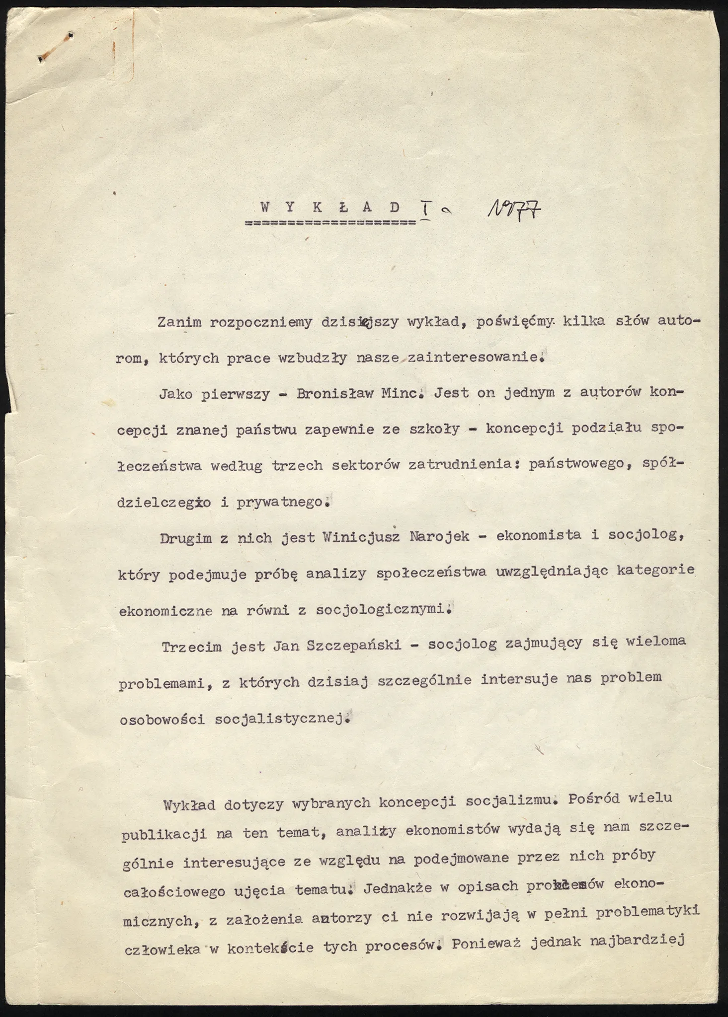 Wykład “Współczesne problemy socjalizmu” – tekst