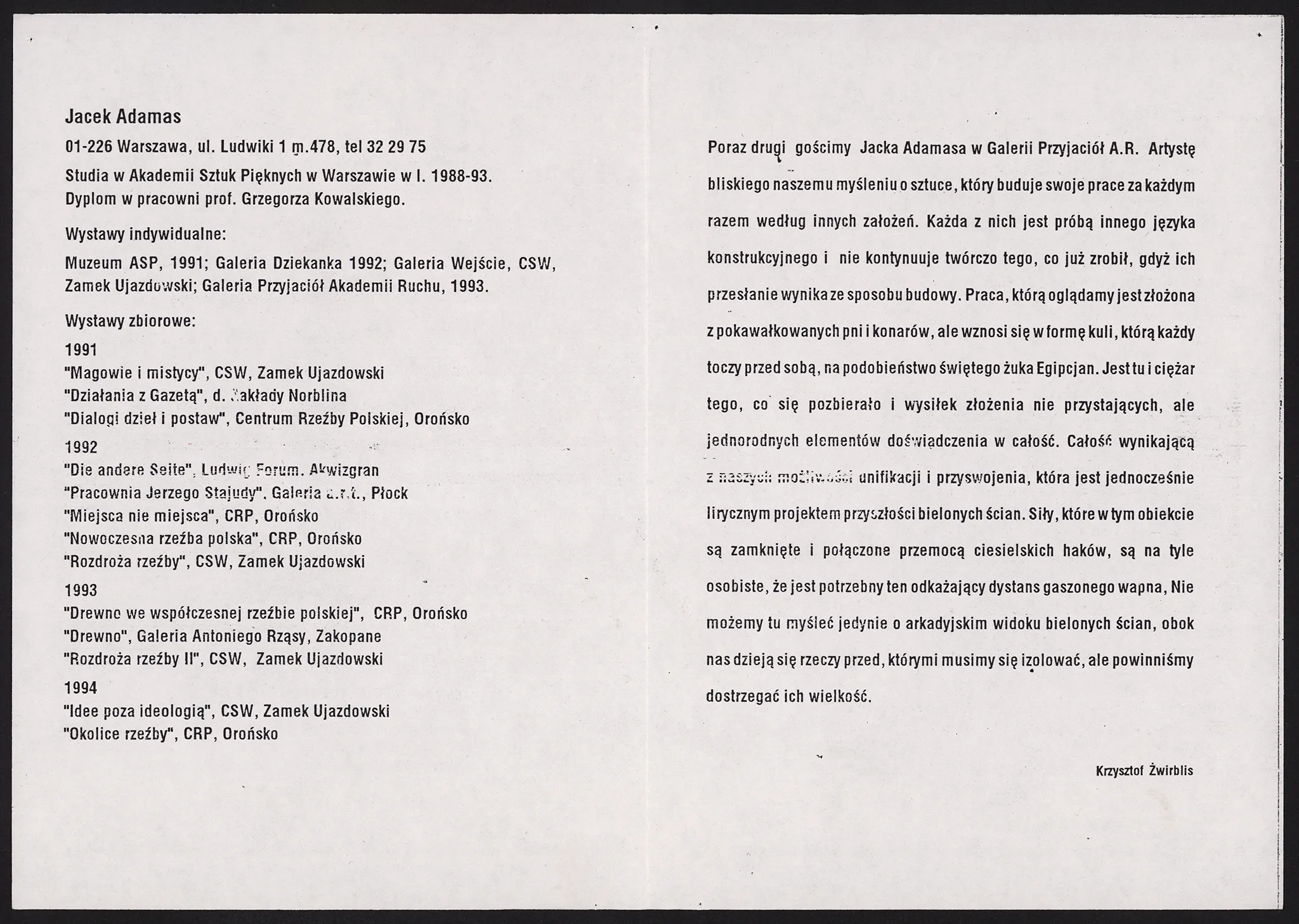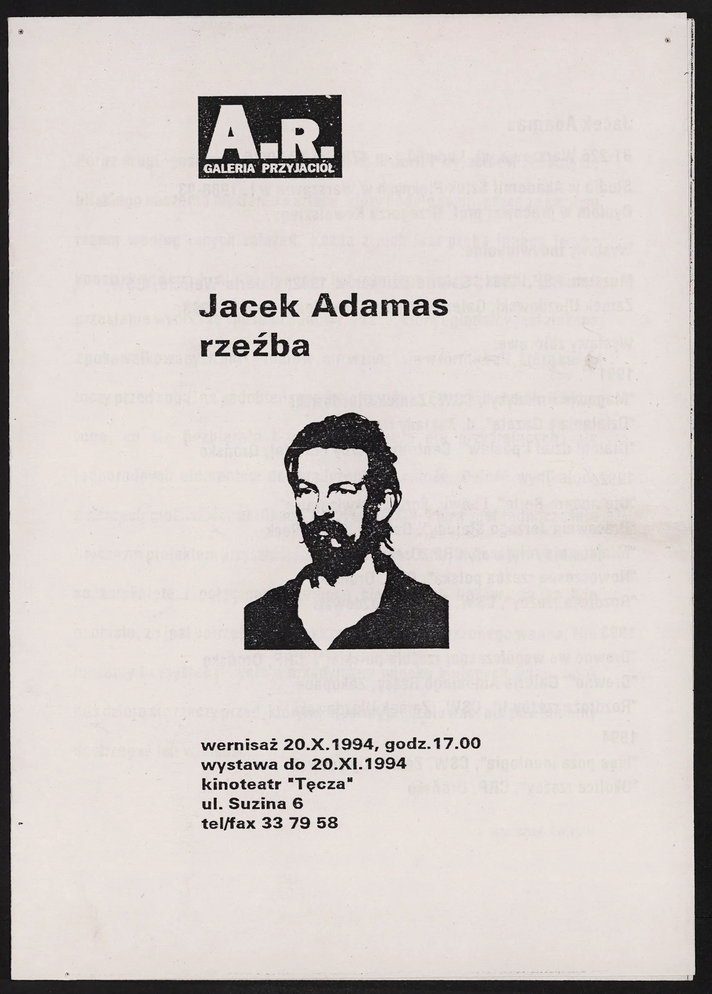 J. Adamas, Jedna rzeźba – ulotka do wystawy — Akademia Ruchu. Archiwum