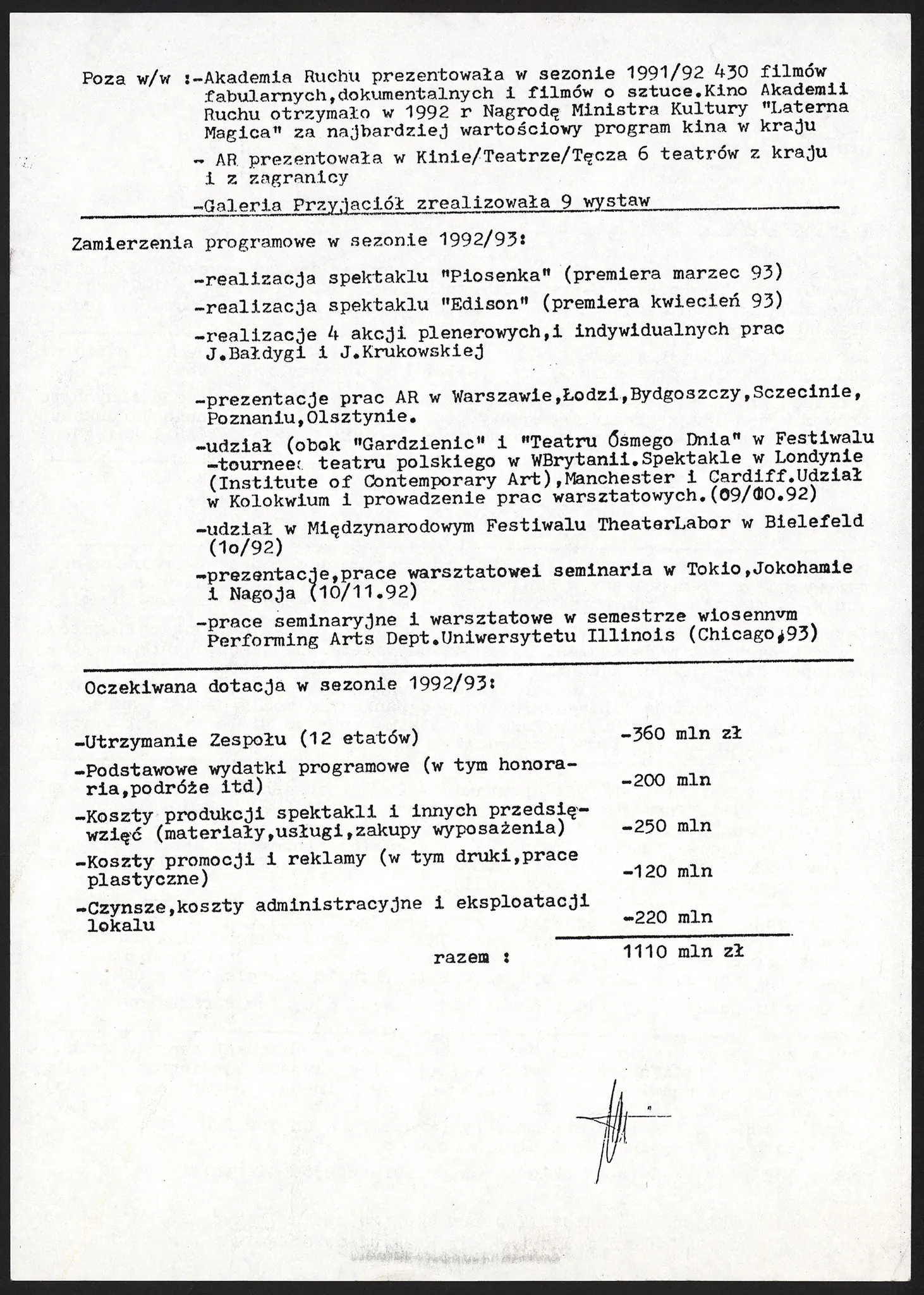W 1997 roku Rada Gminy Żoliborz odmówiła wsparcia Kino/Teatrowi/Tęcza, a AR wymówiono lokal.