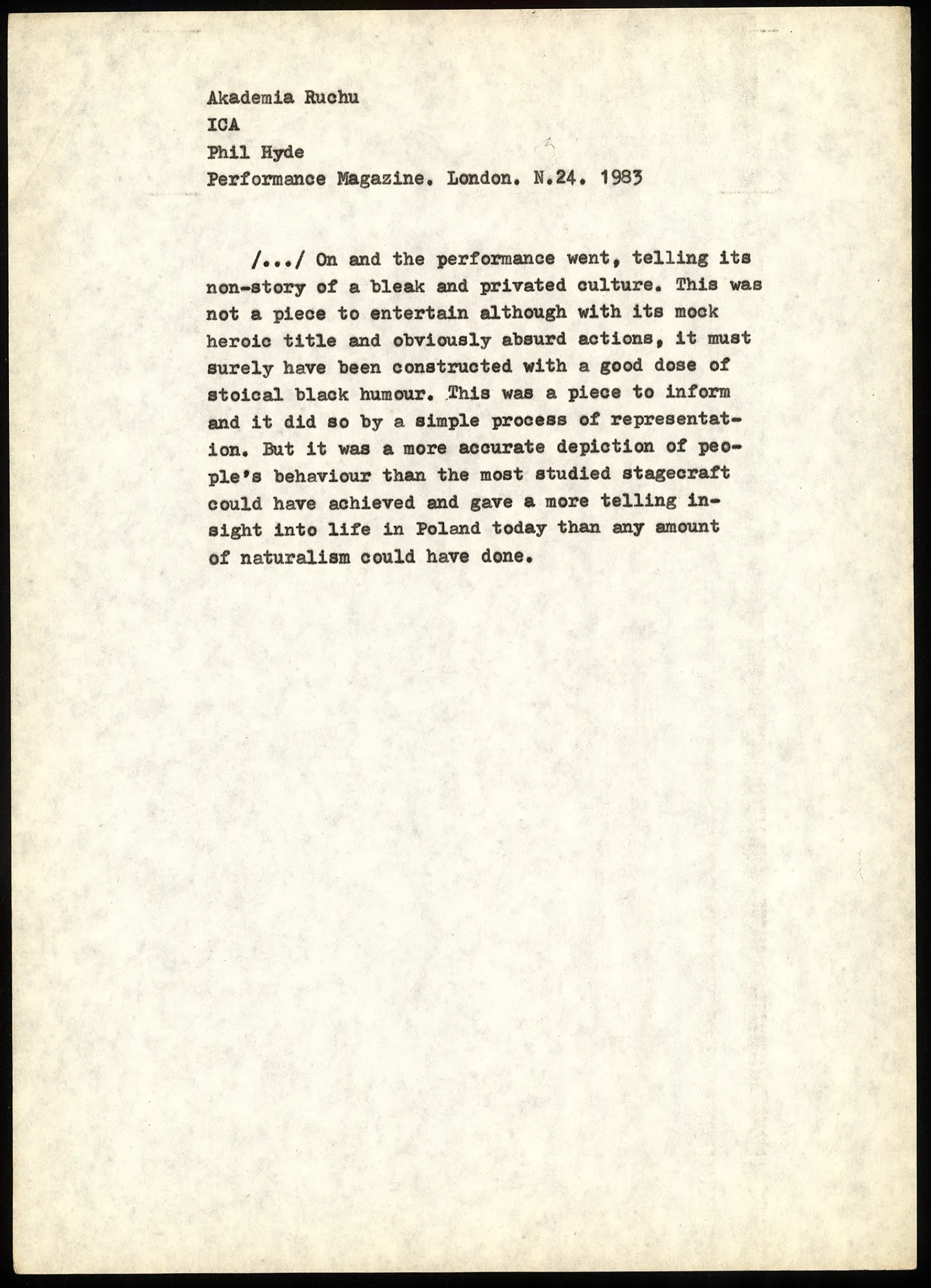 Kolacja. Dobranoc i Kartagina – recenzja w „The Performance Magazine” — Akademia Ruchu. Archiwum