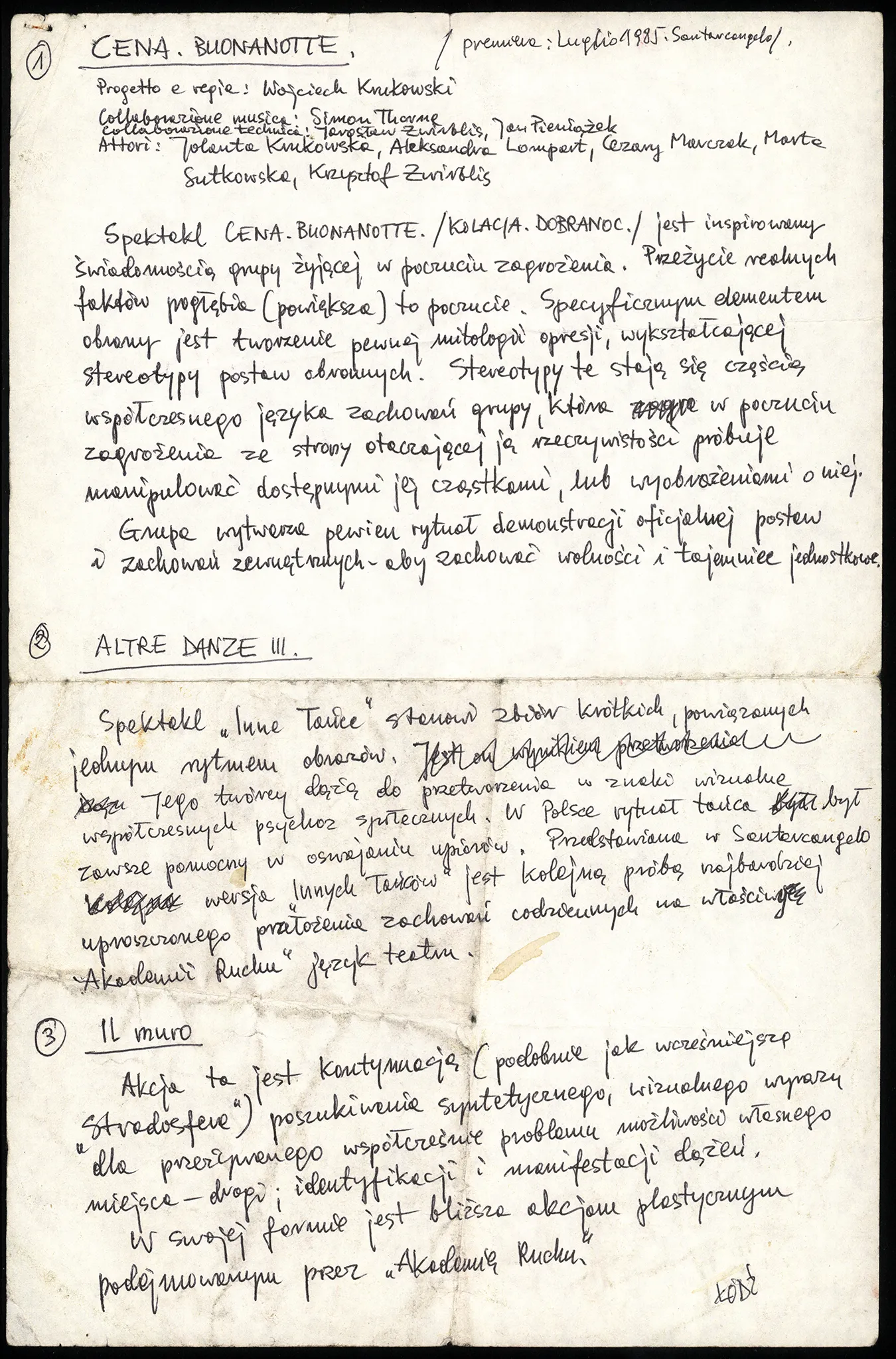 Kolacja. Dobranoc – notatki reżyserskie