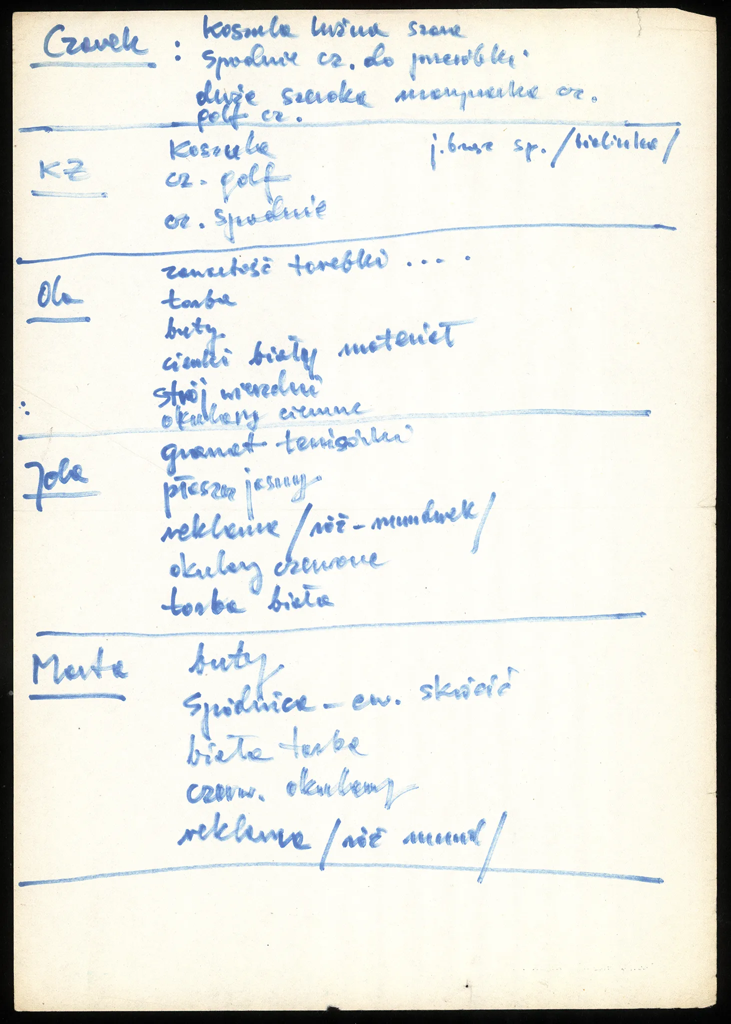 notatki reżyserskie, cz/b