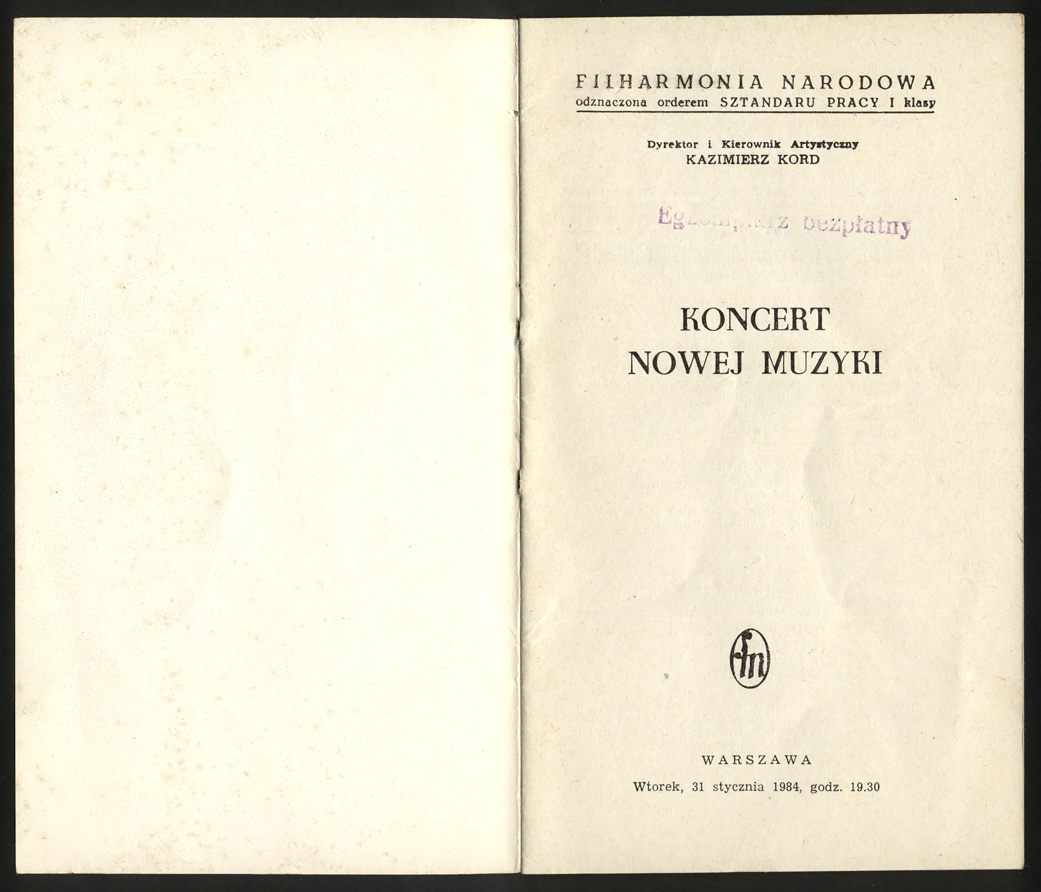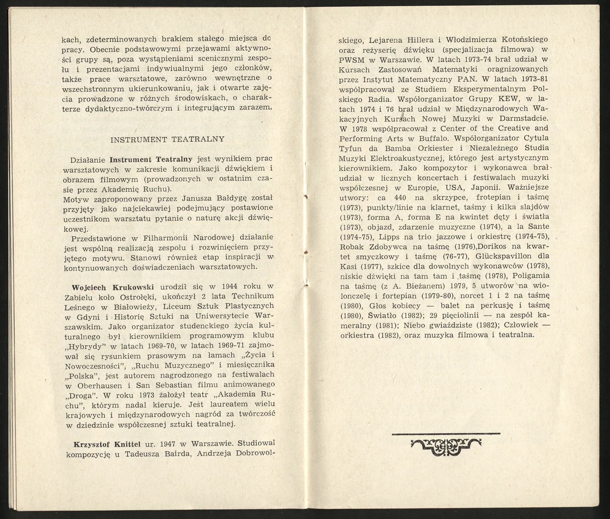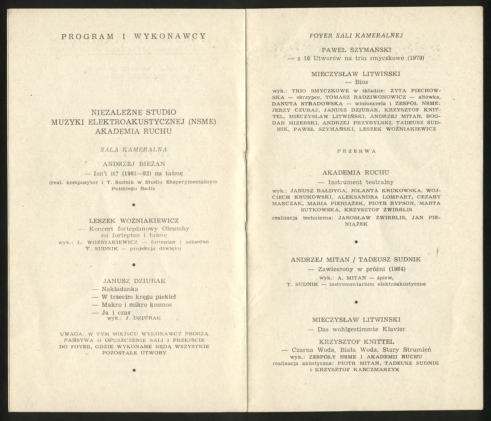 Koncert nowej muzyki – program (m.in. Instrument teatralny Akademii Ruchu) — Akademia Ruchu. Archiwum