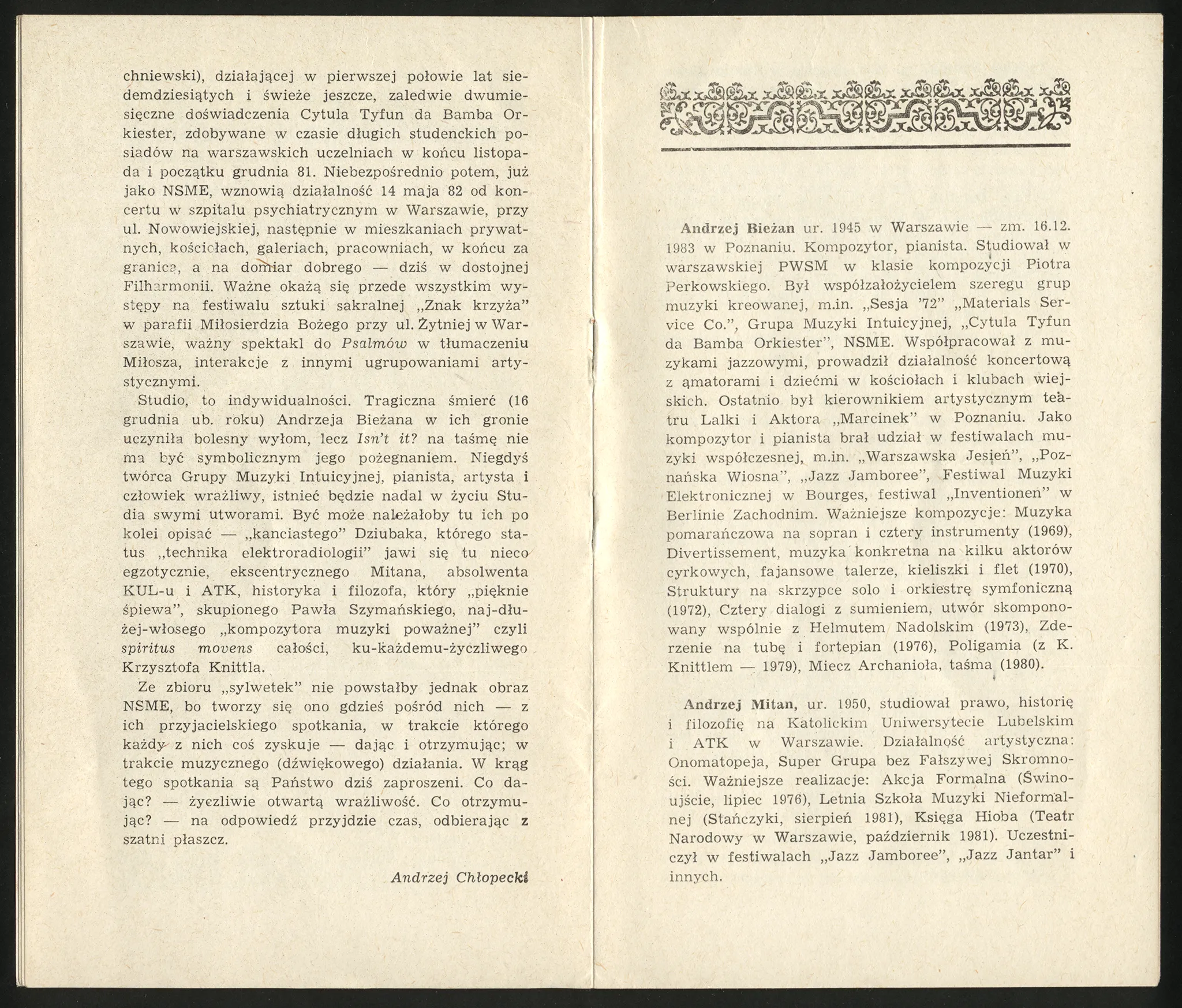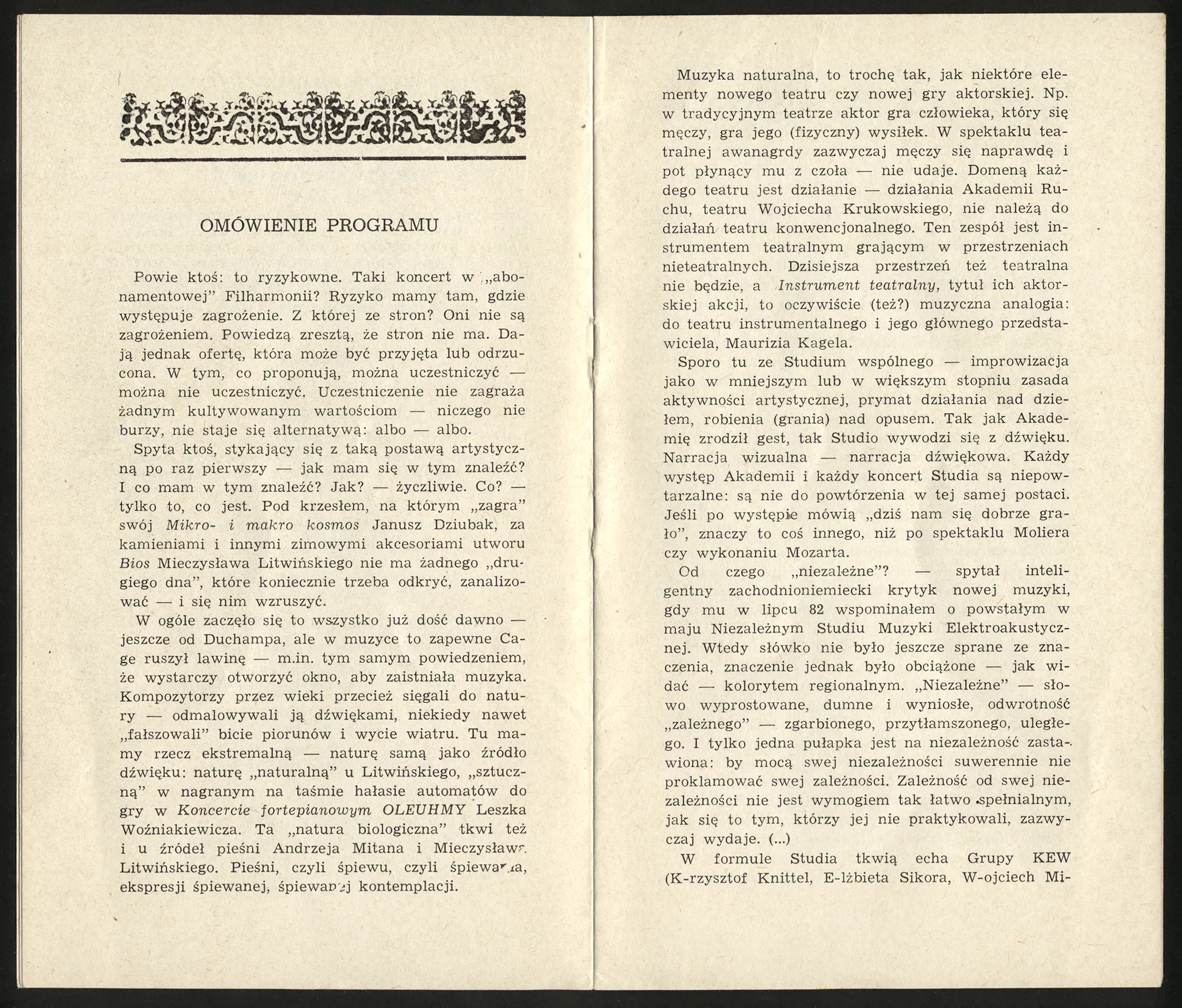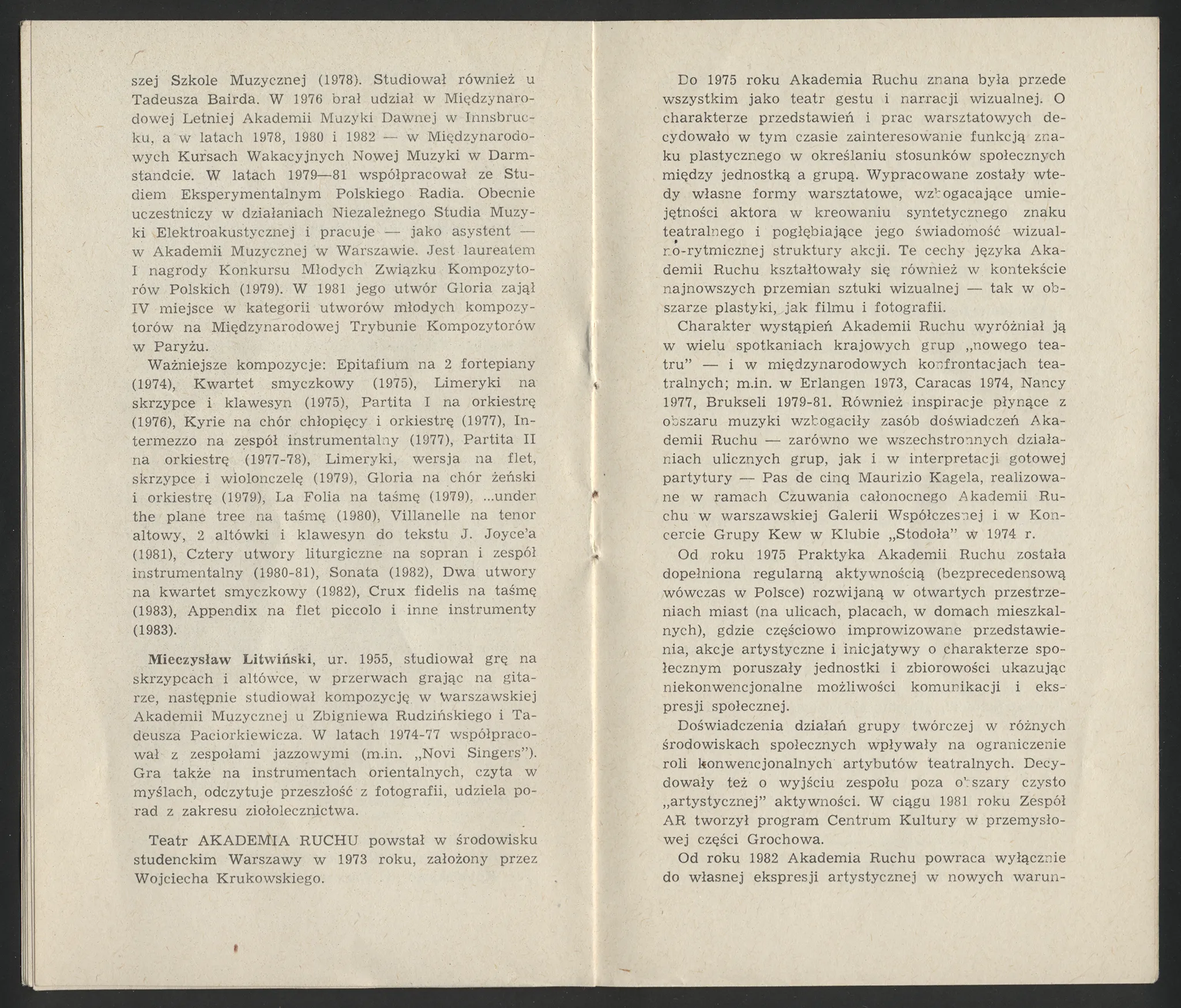 Koncert nowej muzyki – program (m.in. Instrument teatralny Akademii Ruchu) — Akademia Ruchu. Archiwum
