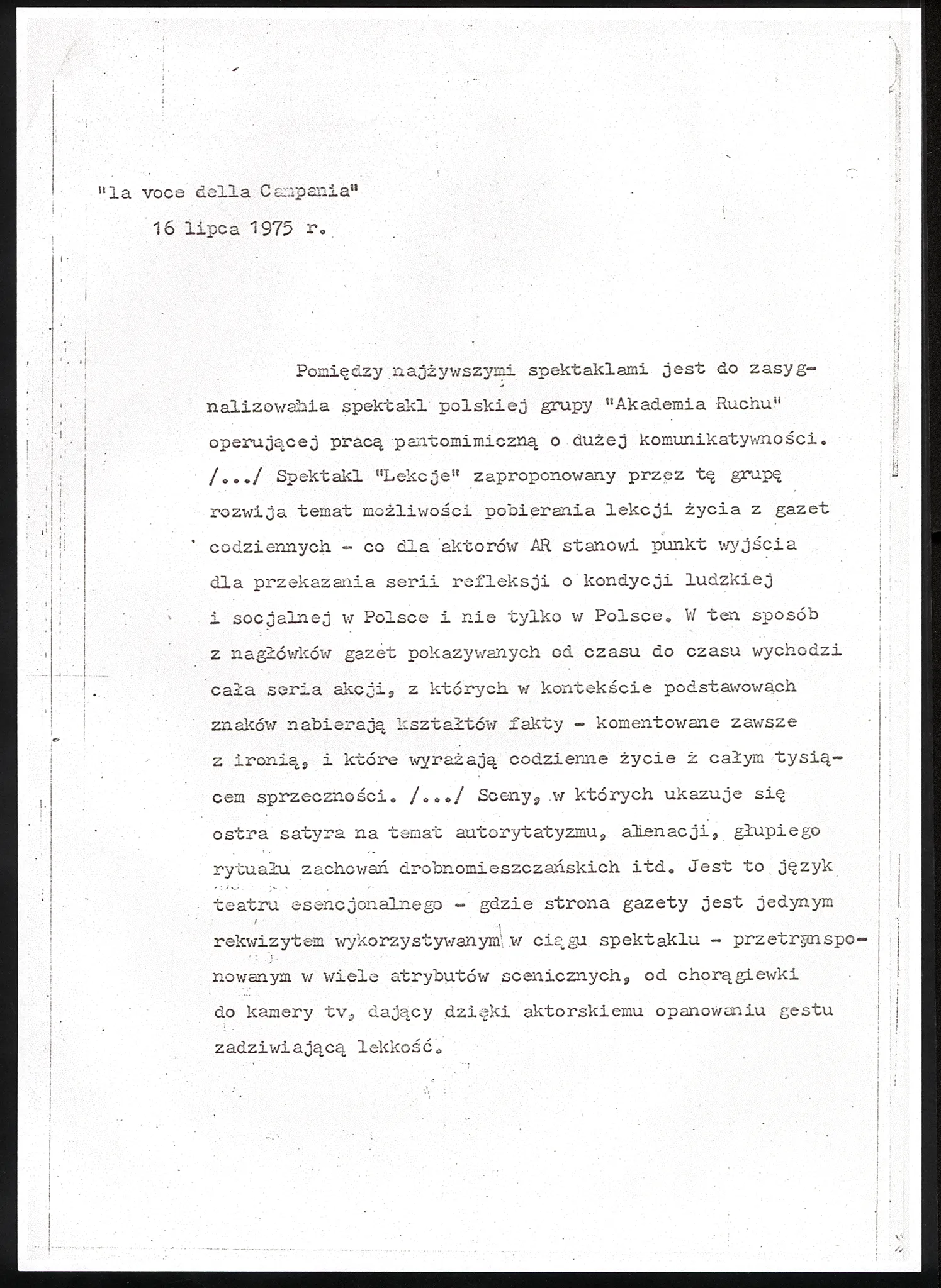 Lekcje (Gazeta nasza codzienna lekcja) – recenzja La voce della Campania