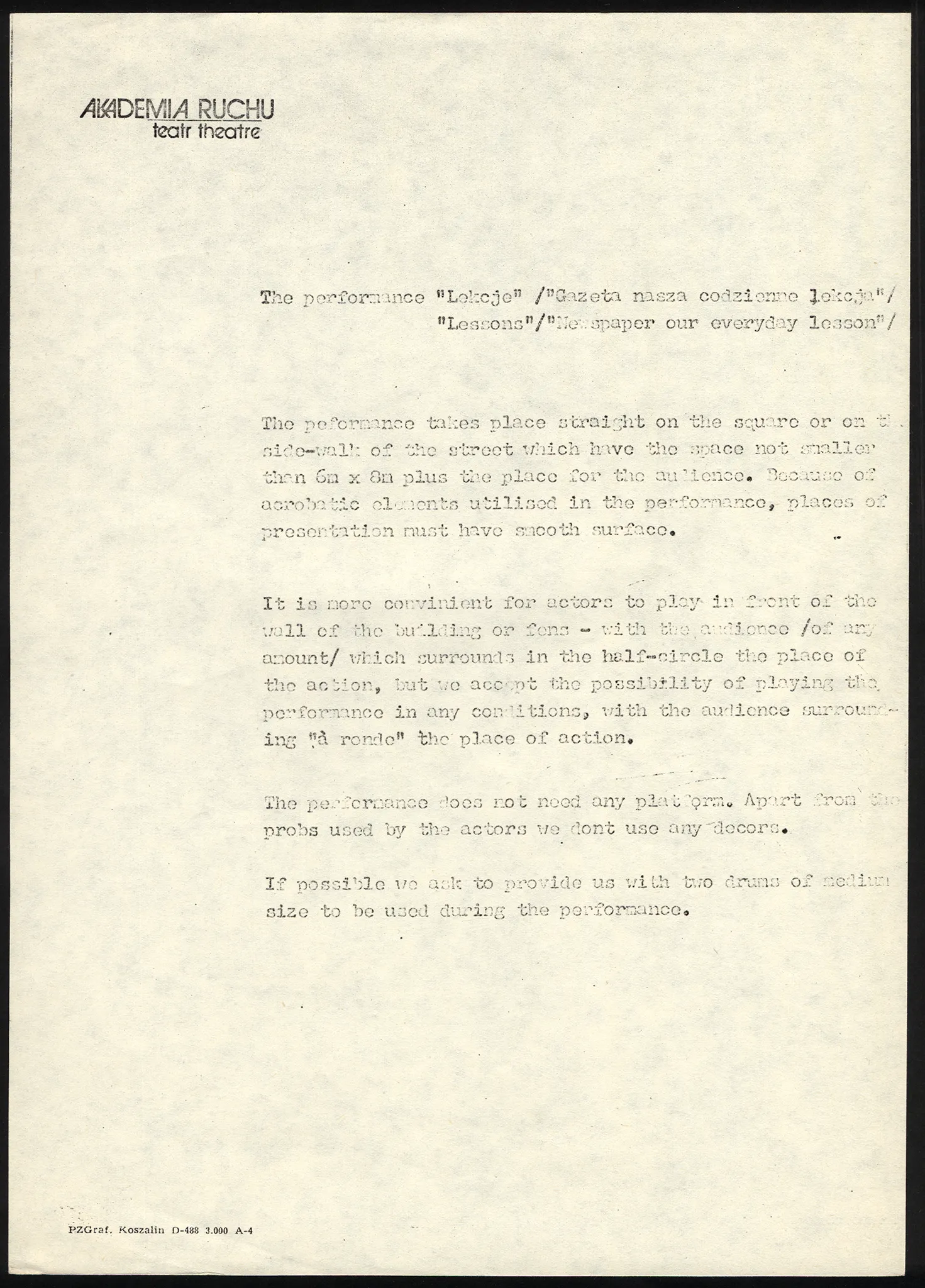 Lekcje (Gazeta nasza codzienna lekcja) – rider techniczny po angielsku