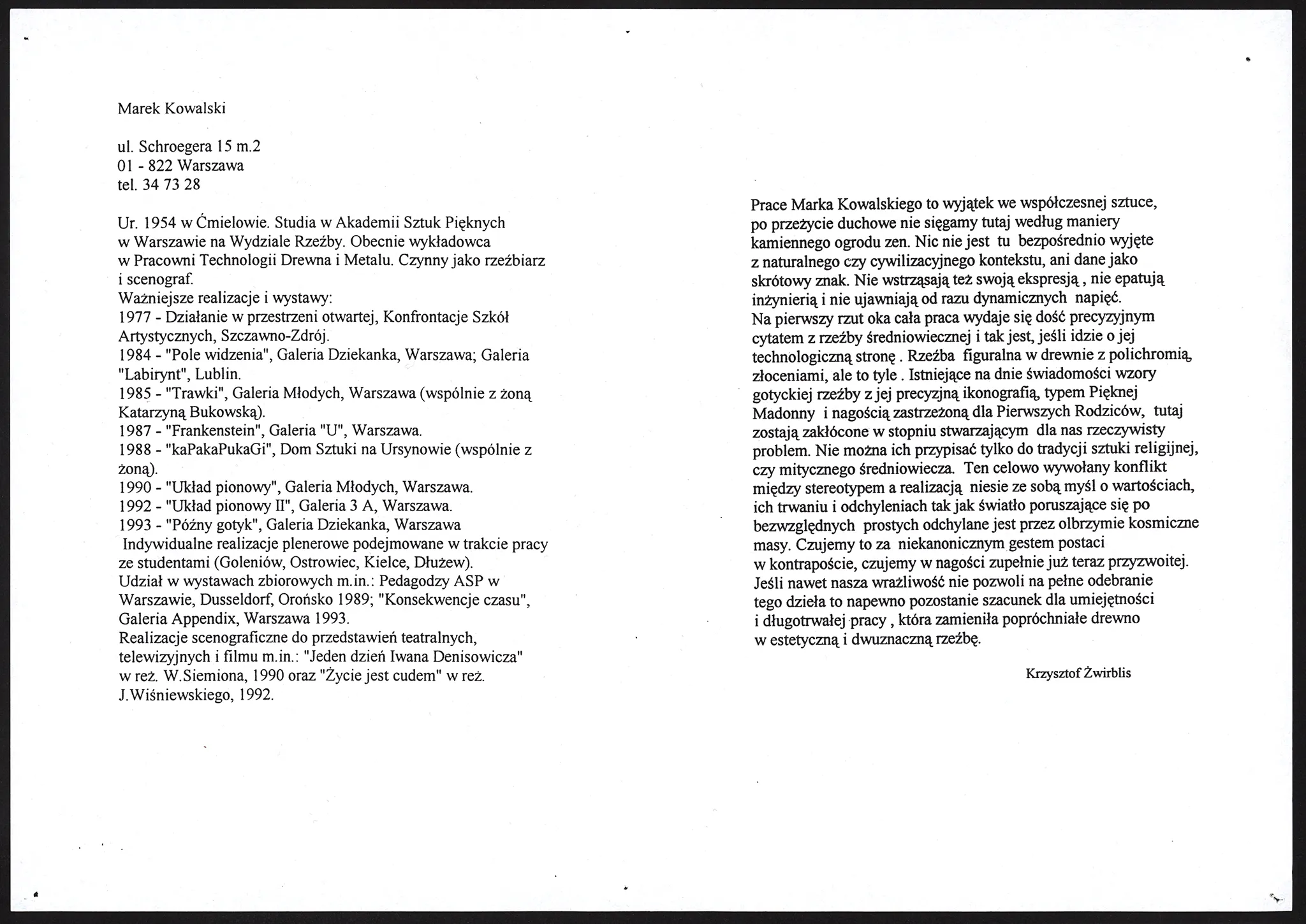 M. Kowalski, Jedna rzeźba – ulotka do wystawy