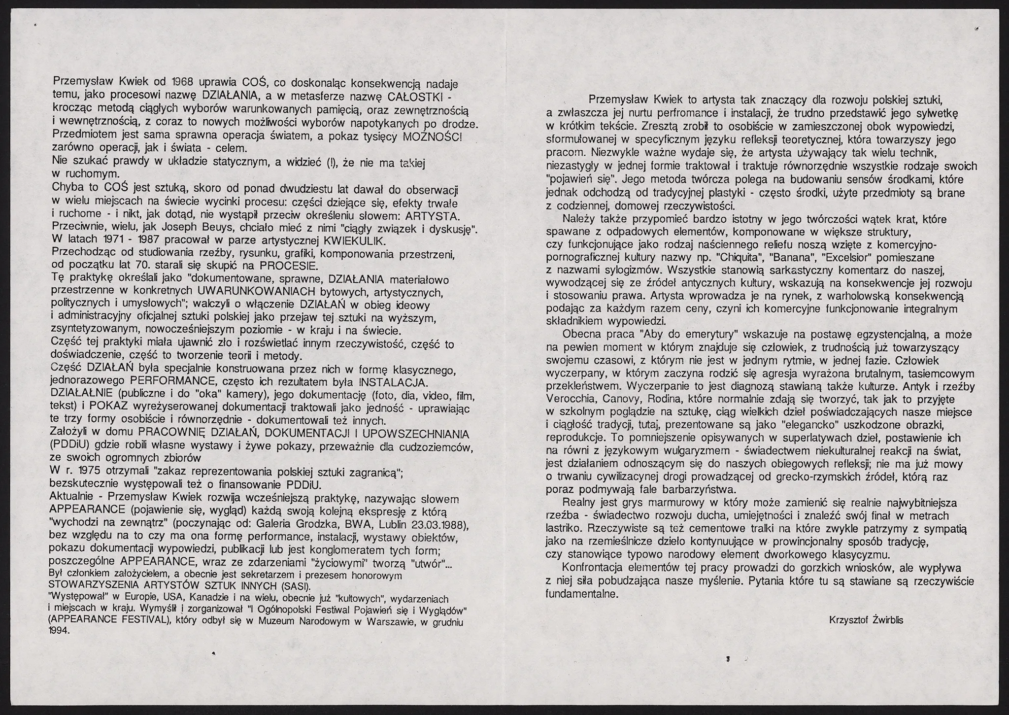 A. Żmijewski, Tożsamość dzidzi – ulotka do wystawy
