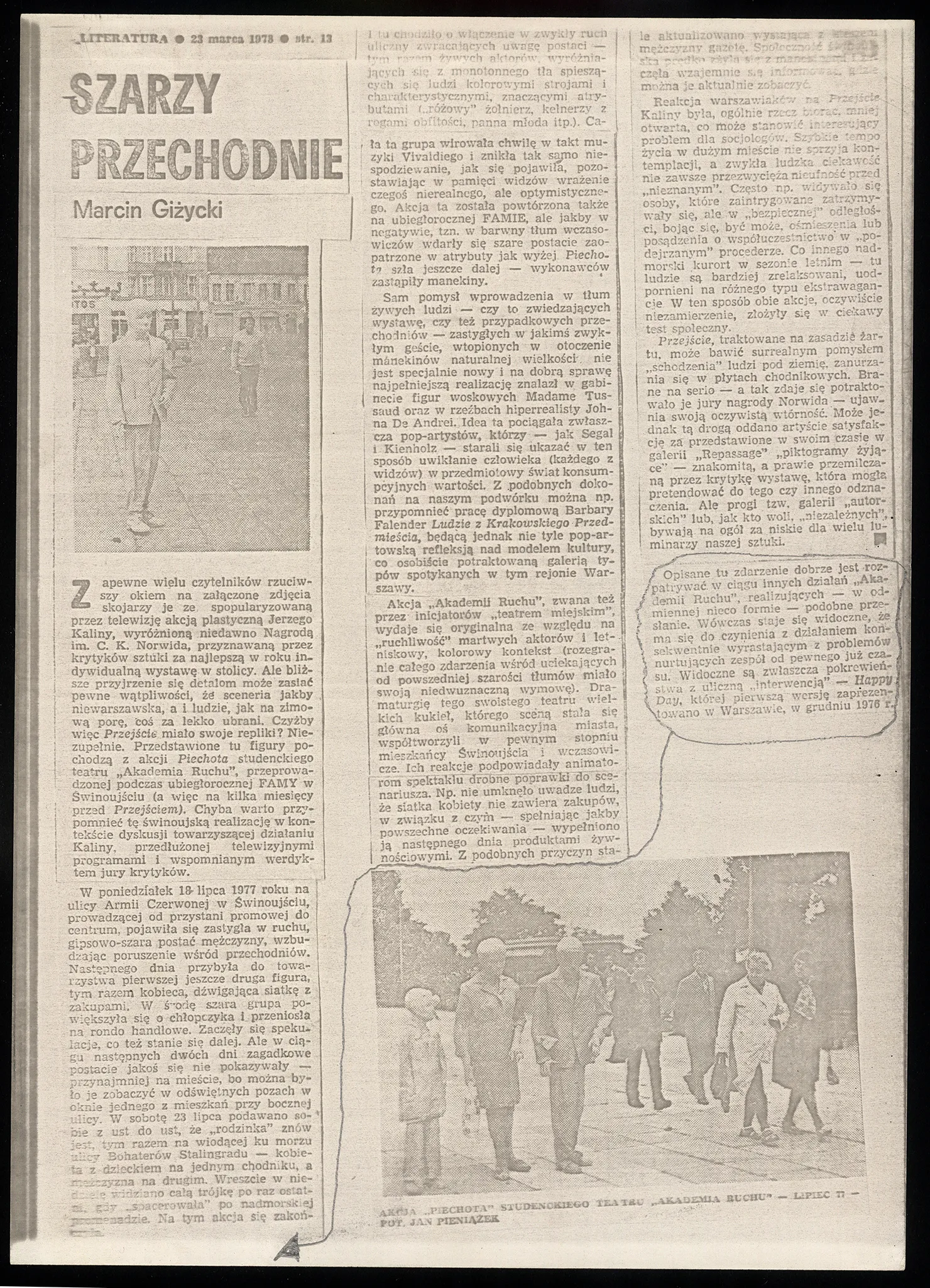Akcja, zrealizowana podczas festiwalu FAMA w Świnoujściu, gdzie AR była odpowiedzialna za koordynację działań teatralnych. Polegała na eksponowaniu na ulicach miasta figur, będących realistycznym odwzorowaniem postaci ludzkich, typowych dla powszedniej rzeczywistości kraju. Szare figury codziennie przemieszczano w obszarze miasta. Akcja, zapoczątkowana na trzy dni przed świętem 22 lipca, trwała siedem dni.