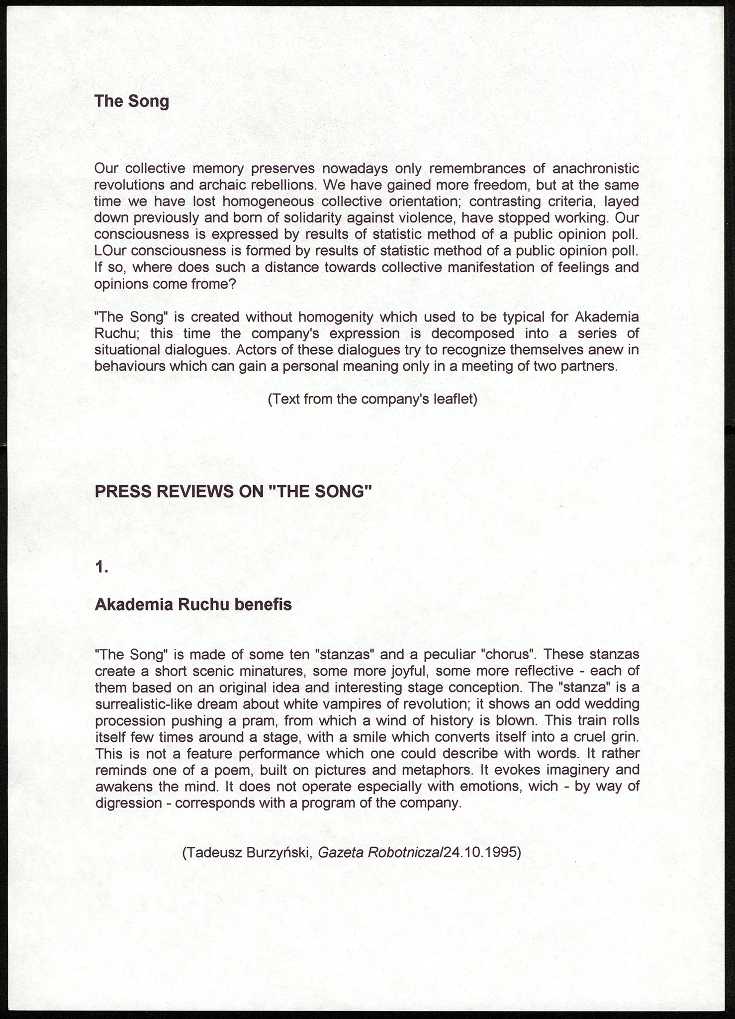 Piosenka – recenzja “Gazeta robotnicza”