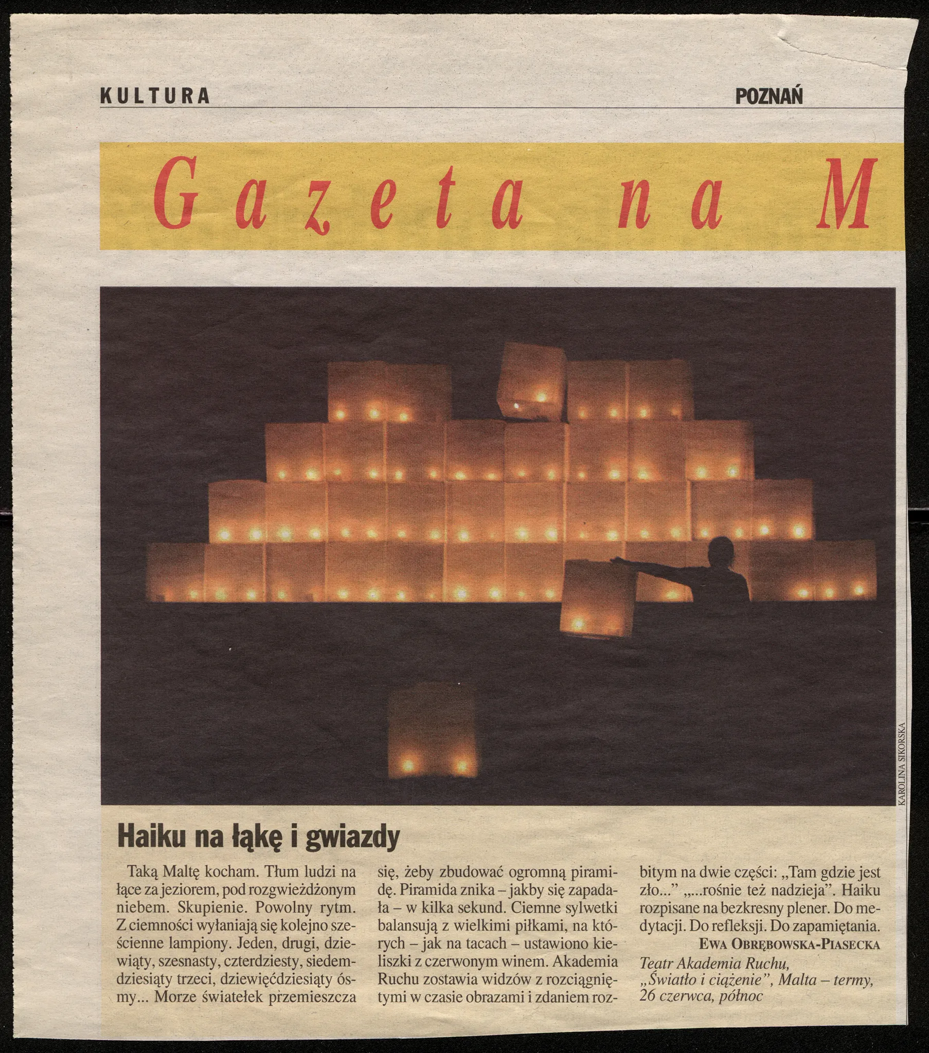 czerwiec 2003 – Międzynarodowy Festiwal Teatralny Malta w Poznaniu, wraz z akcją Tylko jedna godzina