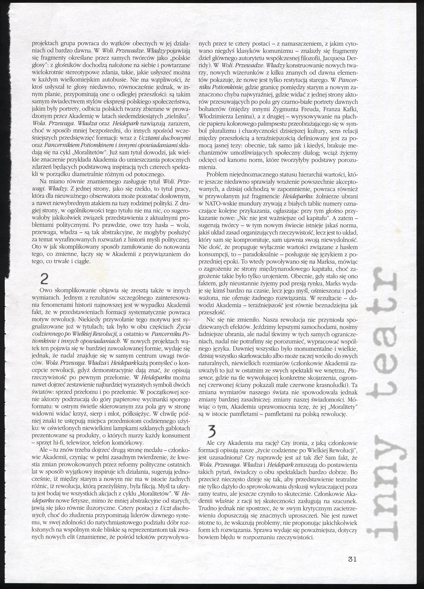 AR zaproponowała publiczności udział w nieco przewrotnej zabawie z użyciem haseł i mitów przeszłości oraz bardzo realnych, współczesnych wzorców zachowań właściwych dla nowej klasy politycznej.
