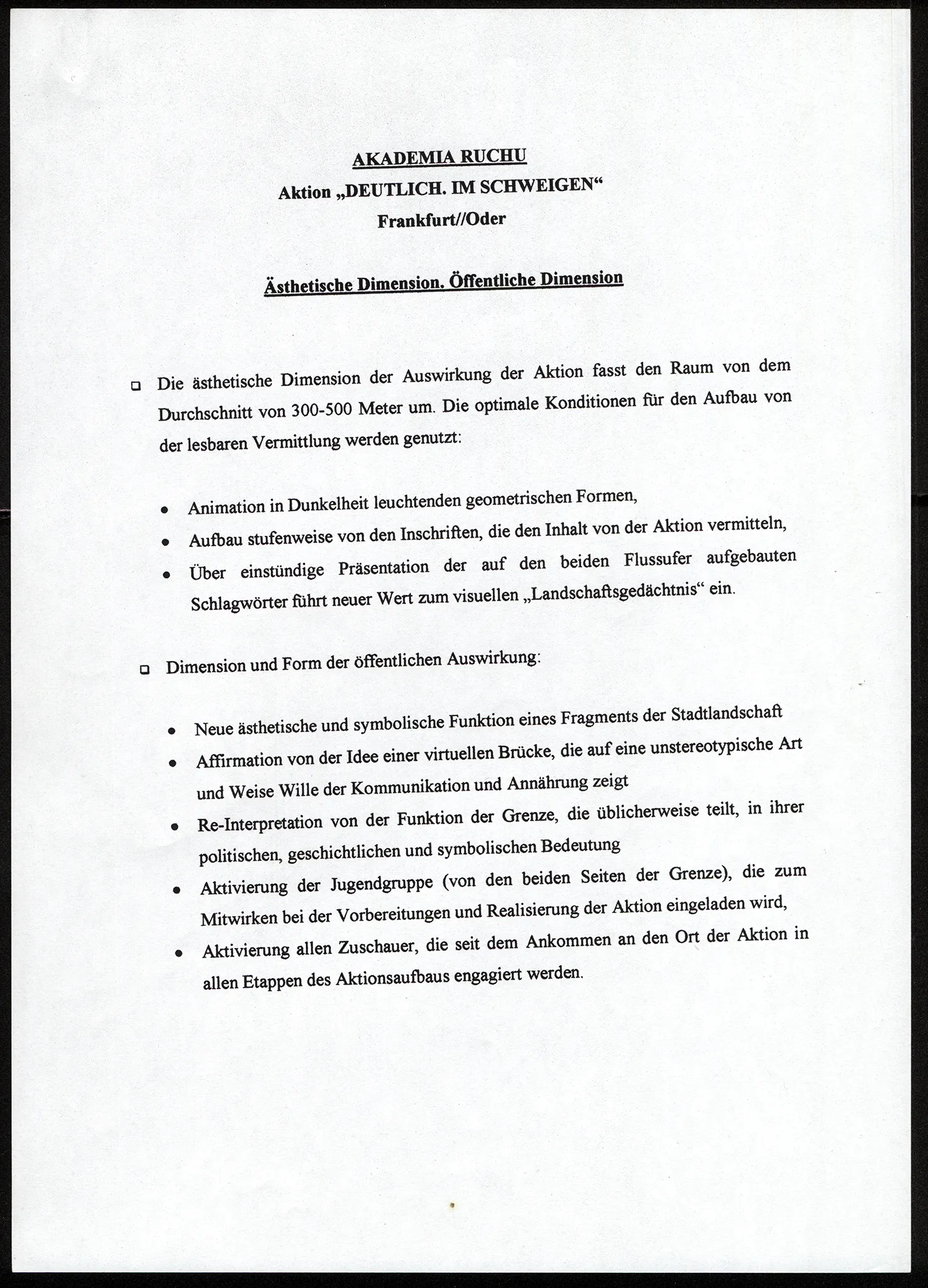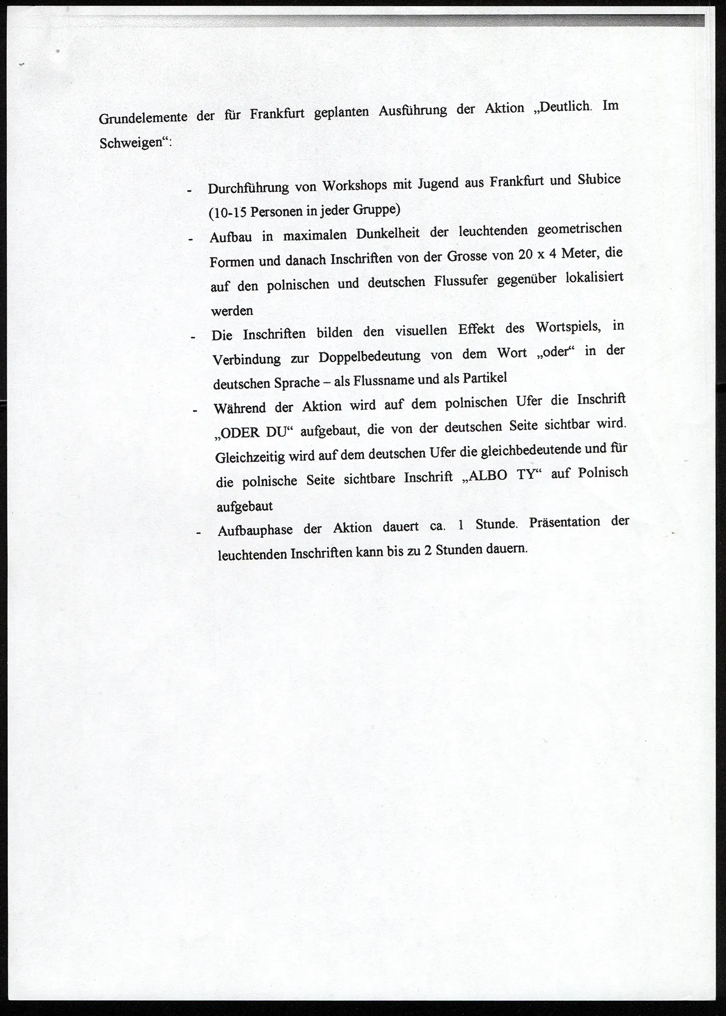Wyraźnie. W milczeniu (Frankfurt/Słubice) – opis