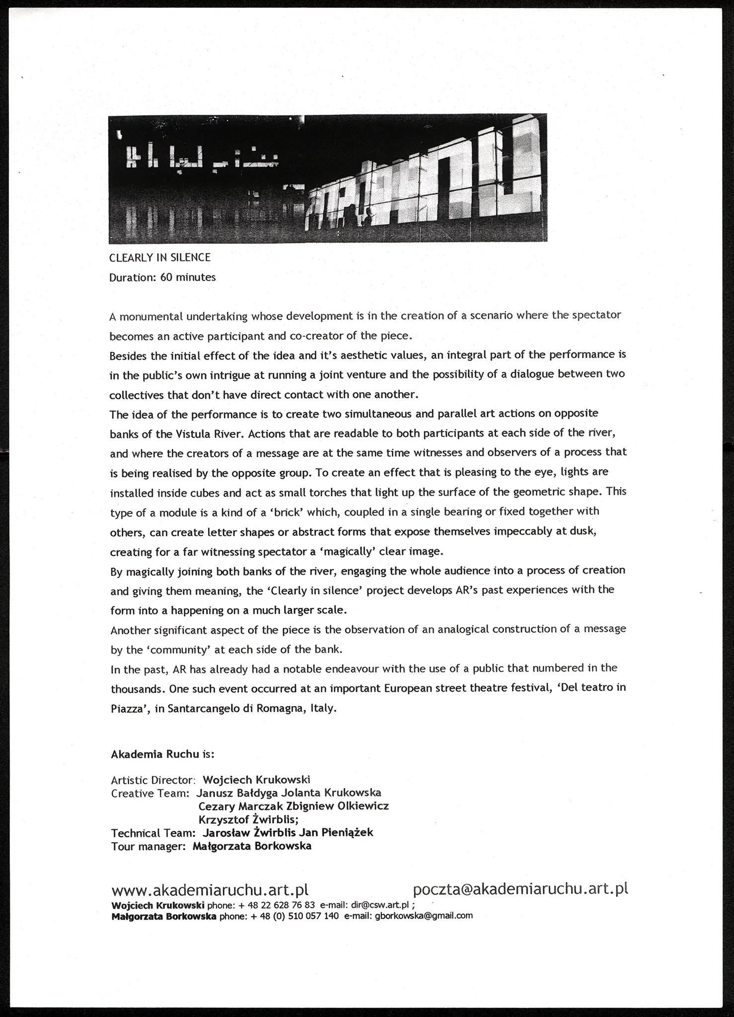 Wyraźnie. W milczeniu – opis po angielsku — Akademia Ruchu. Archiwum